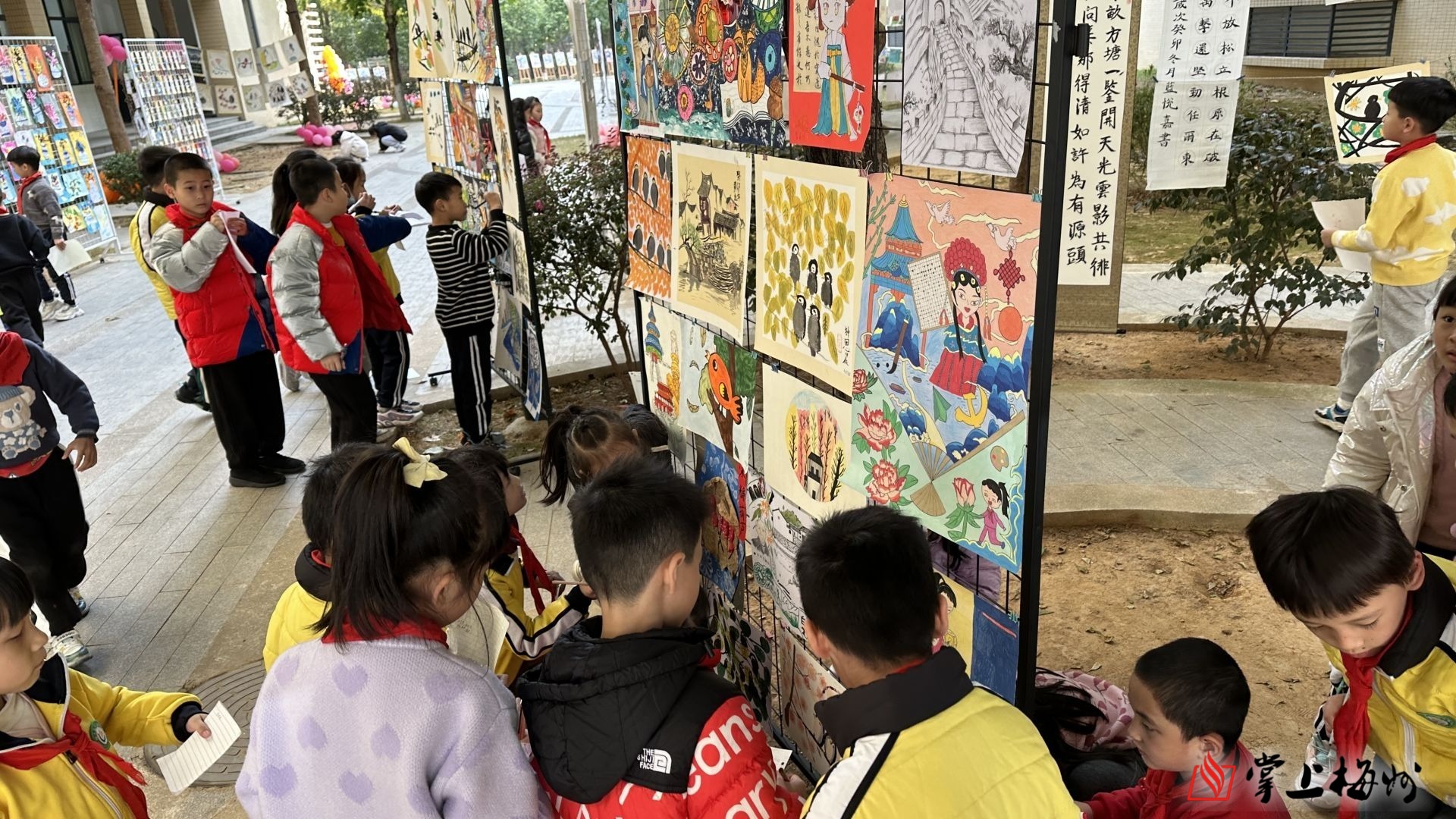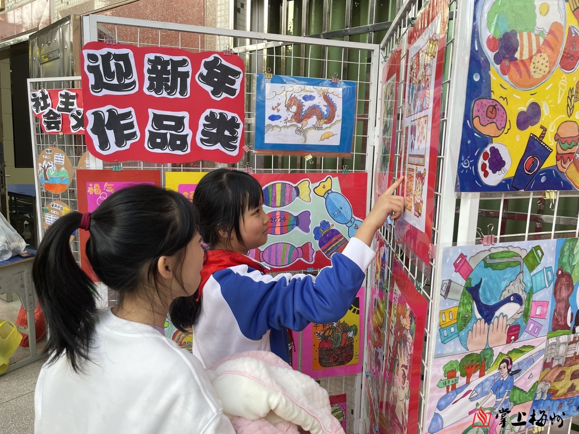 梅江区风眠小学举办了欢庆元旦“约绘风眠” 学生书画作品展。