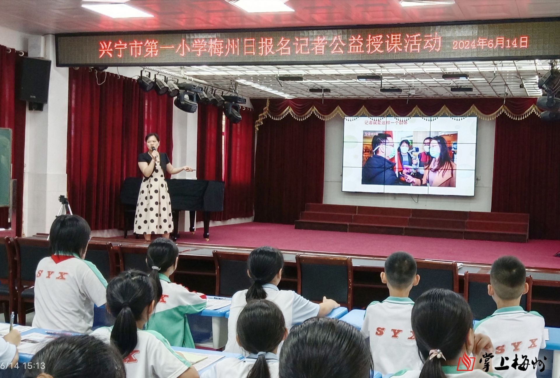 掌上梅州讯 6月14日,梅州日报小记者公益项目——“梅州日报社名记者公益授课”活动走进兴宁市第一小学,梅州日报社教科文卫部主任、《小记者》报主编廖爱玲为该校小记者主讲《新闻与写作》。