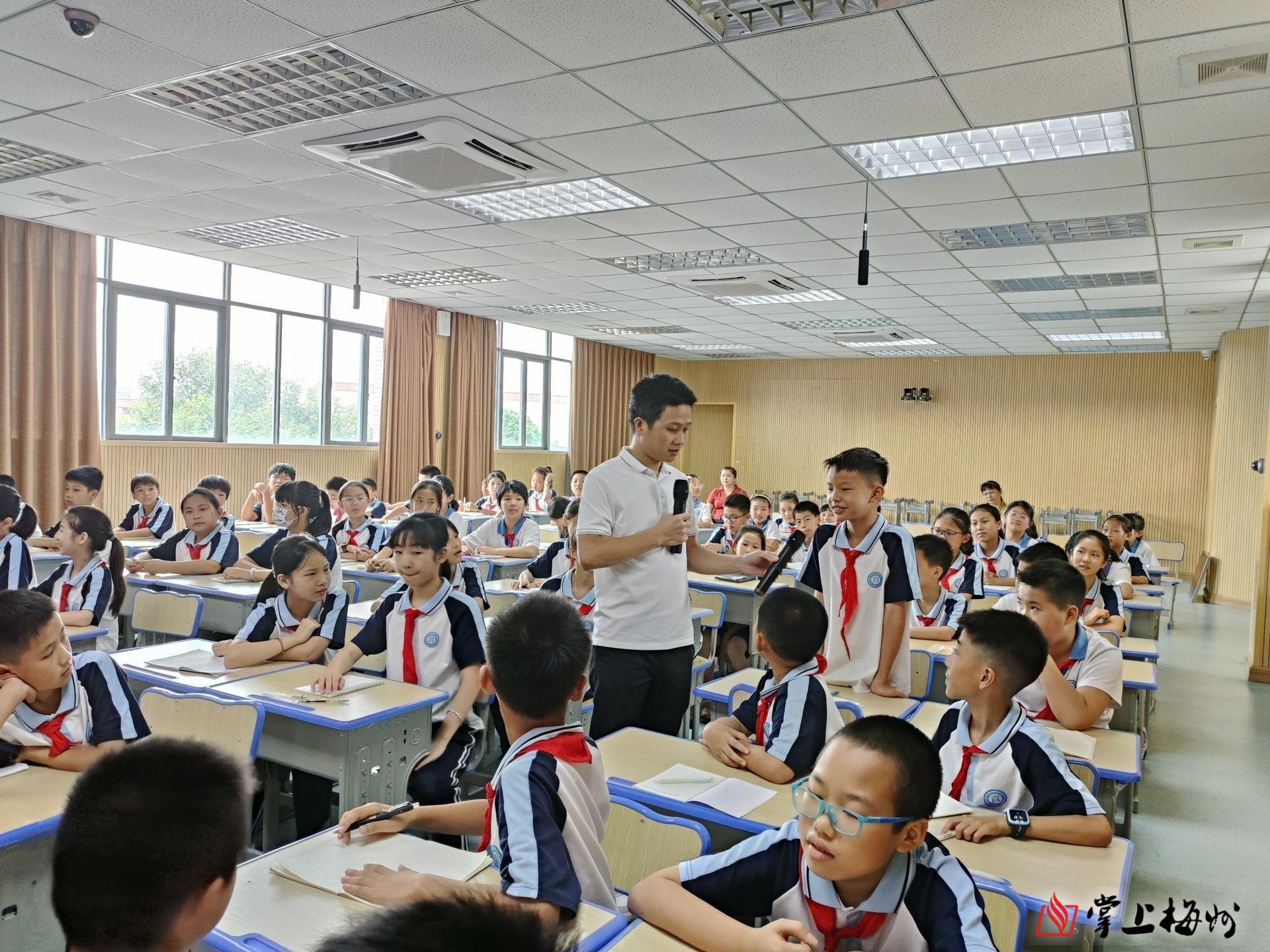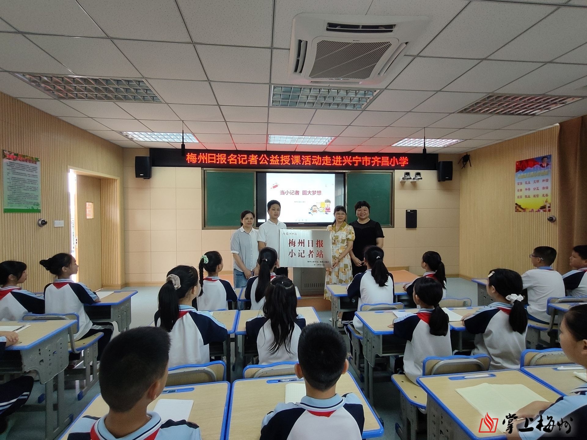 掌上梅州讯 6月14日,梅州日报小记者公益项目——“梅州日报社名记者公益授课”活动走进兴宁市齐昌小学,梅州日报社记者黄科为该校小记者主讲《当小记者 圆大梦想》。