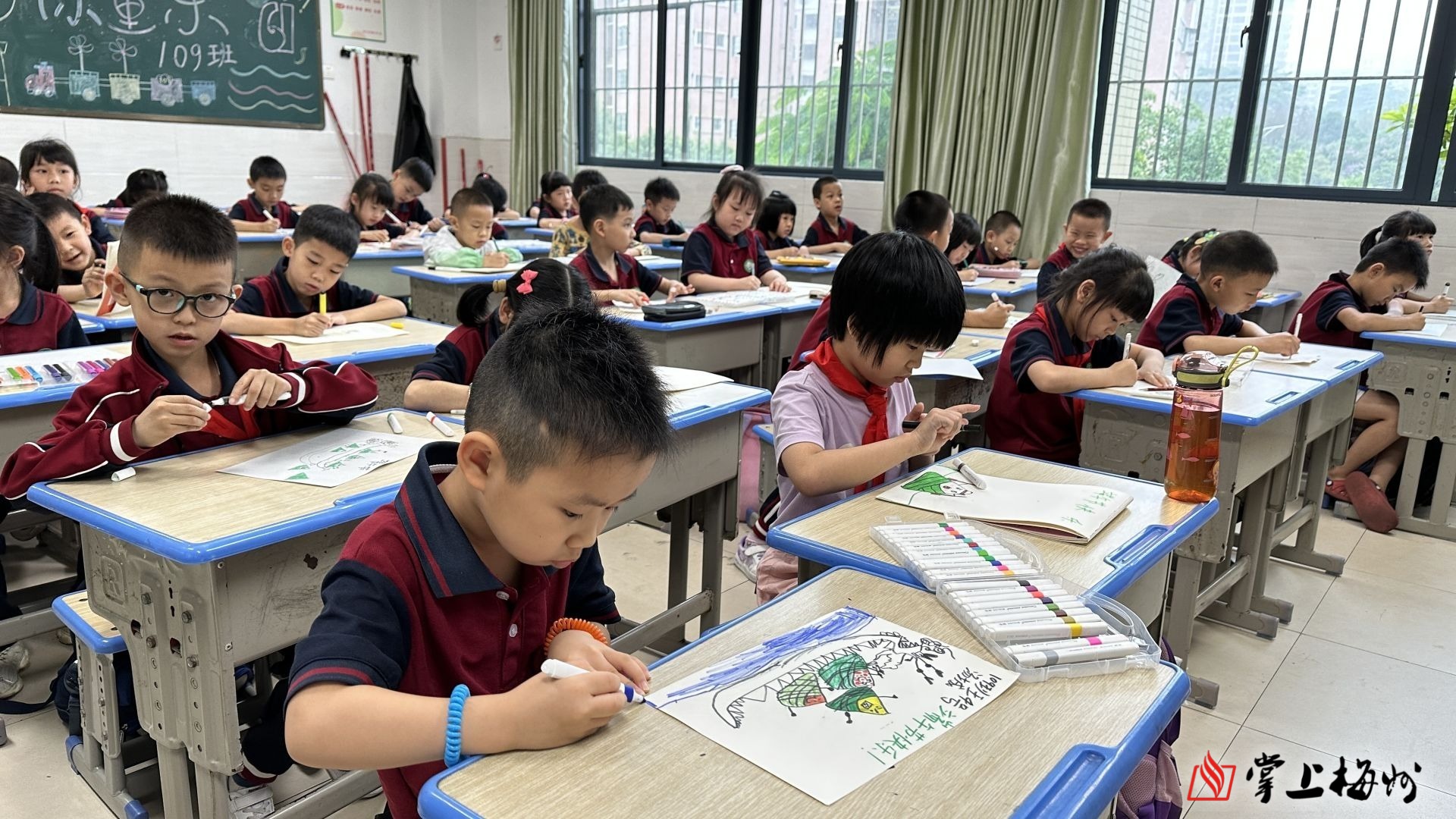 风眠小学的学生们通过绘画创作出了一个个栩栩如生的粽子。(学校供图)