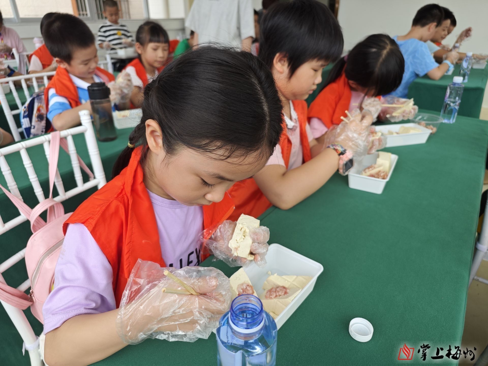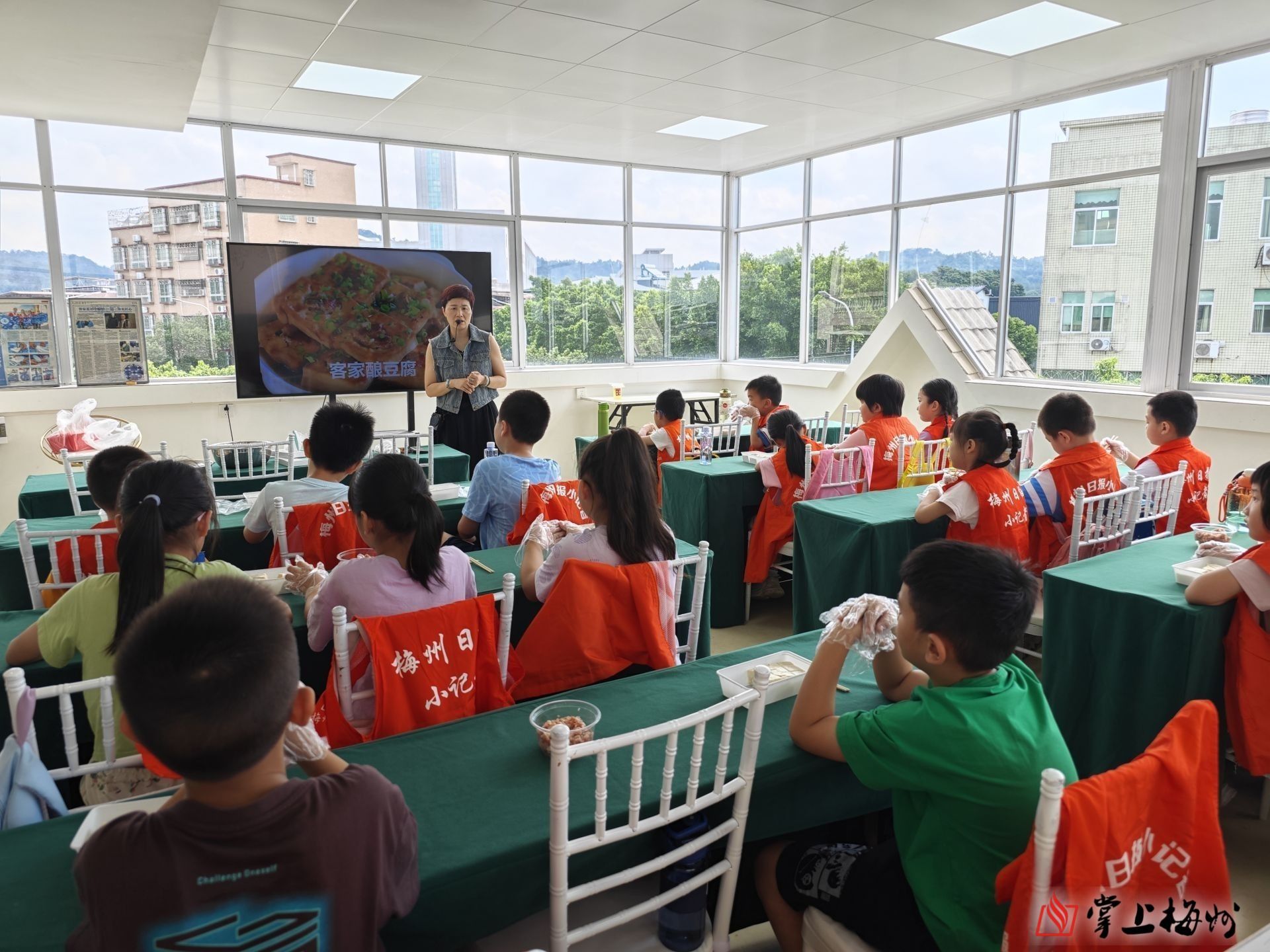 掌上梅州讯 8月16日,梅州日报七彩课堂的小记者们前往梅江区“诸所有物”非遗研学基地,学习客家非遗技艺,体验制作客家美食——五华酿豆腐。