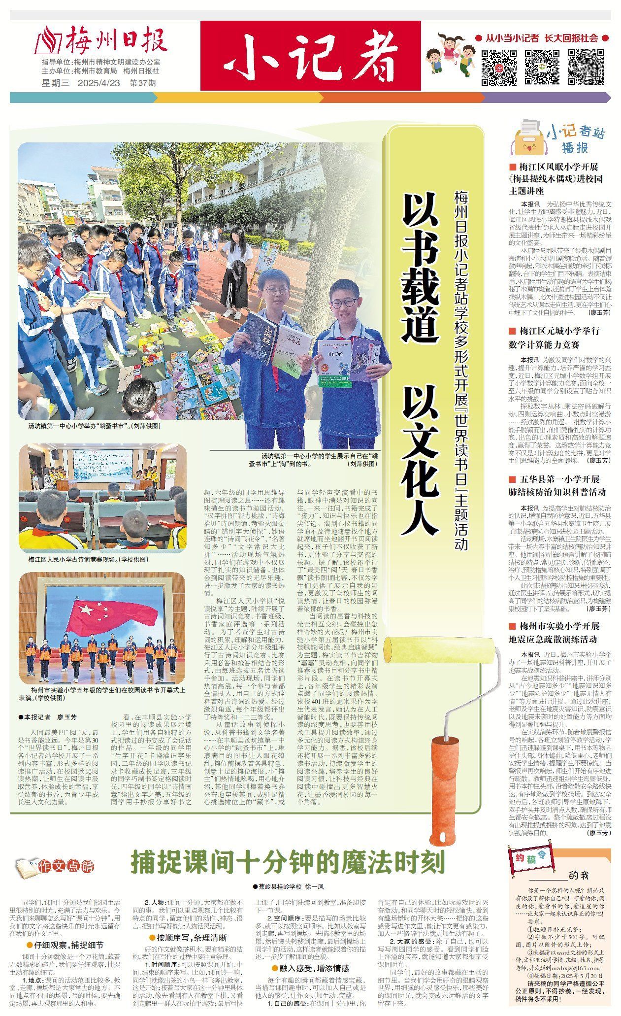 人间最美四“阅”天,最是书香能致远。今年是第30个“世界读书日”,梅州日报各小记者站学校开展了一系列内容丰富、形式多样的阅读推广活动,在校园掀起阅读热潮,让师生在阅读中汲取营养,体验成长的幸福,享受浓郁的书香,为青少年成长注入文化力量。