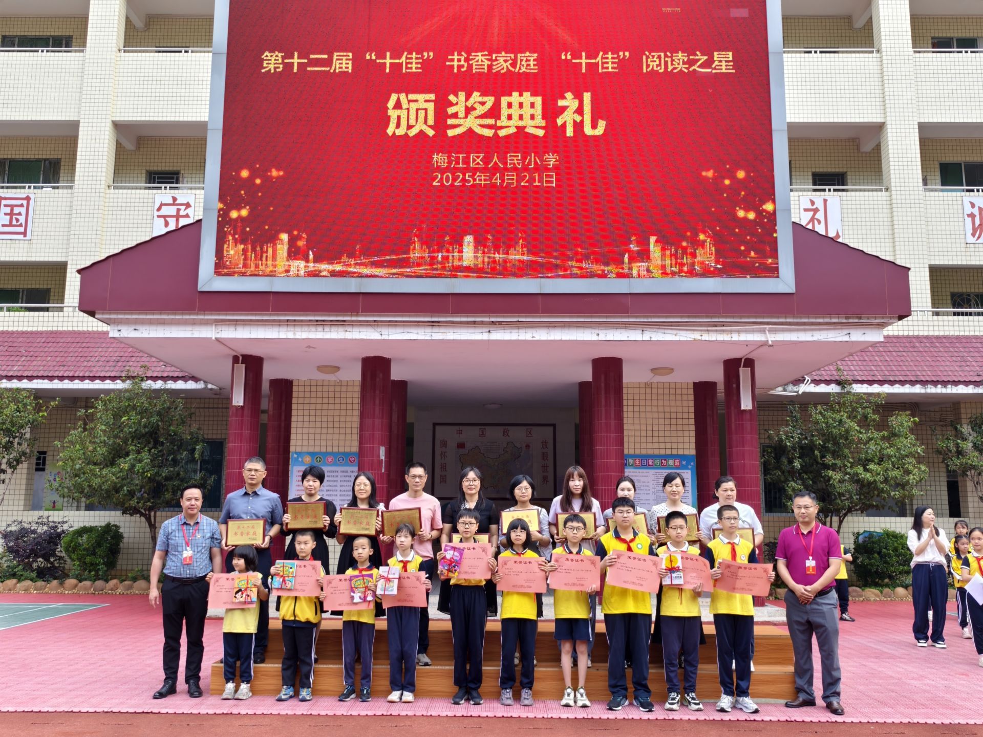 梅江区人民小学“十佳”书香家庭 “十佳”阅读之星颁奖典礼。(学校供图)