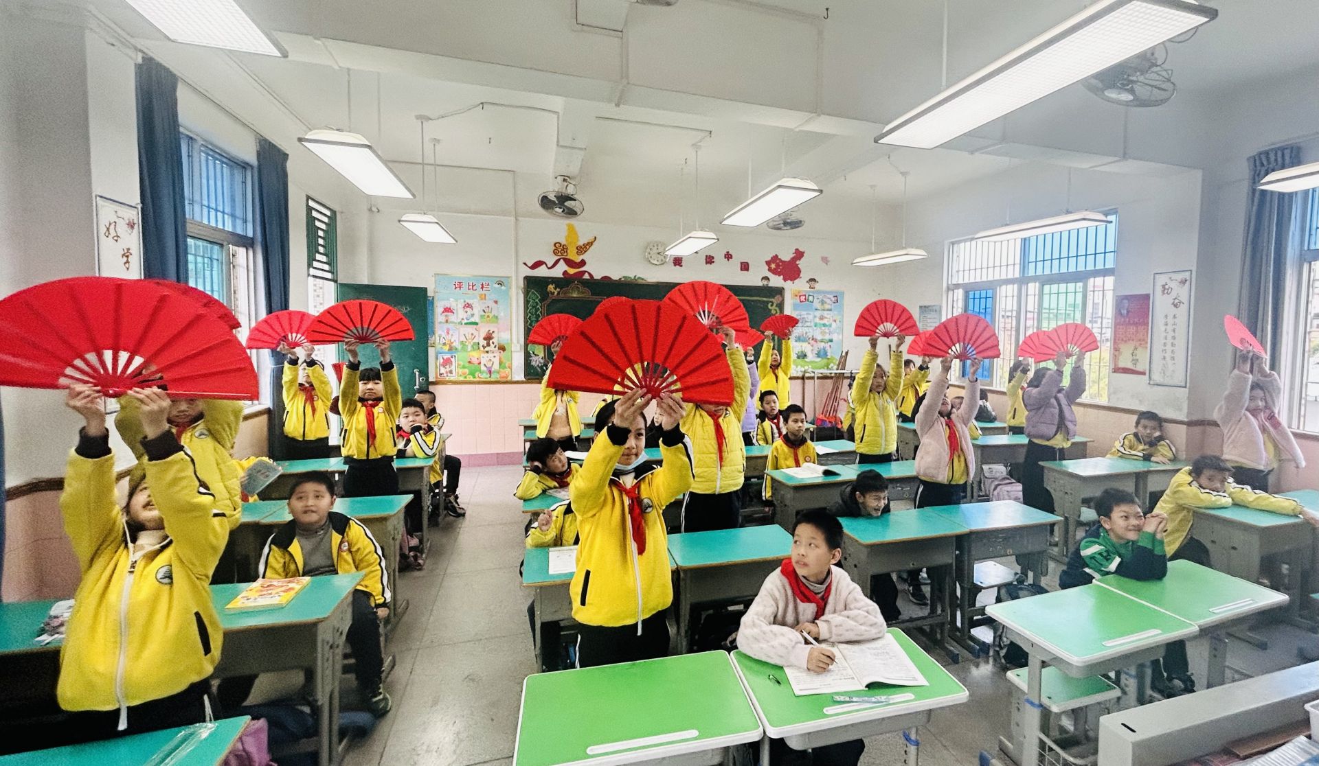 我早就盼着这一刻了,铃声还没停,我就一把抓起放在桌洞里的功夫扇,那模样就像一个即将出征的小战士。老师喊了声 “开始”,激昂的音乐 “这江山我起笔,民族血脉又几万里……” 瞬间在教室里响起来。