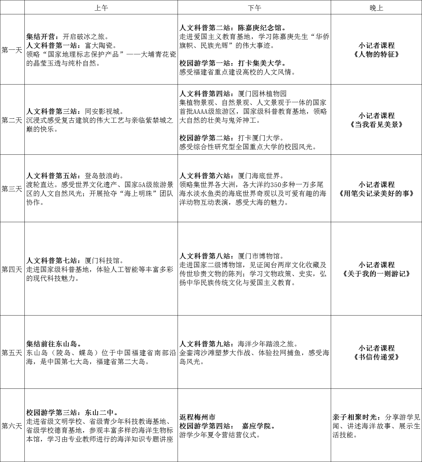 梅州日报社在2025年暑期将举办梅州日报小记者夏令营,分别是: