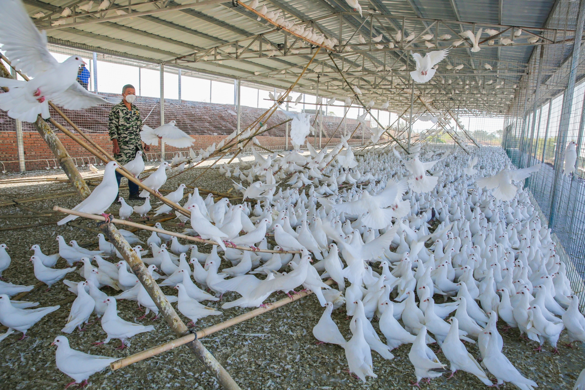 位于龙田镇羊岭村的梅州市金绿现代农业发展有限公司羊岭村种鸽养殖场,数以百万计的鸽子正在被精心饲养,等待出笼后售往各地(吴腾江 摄)