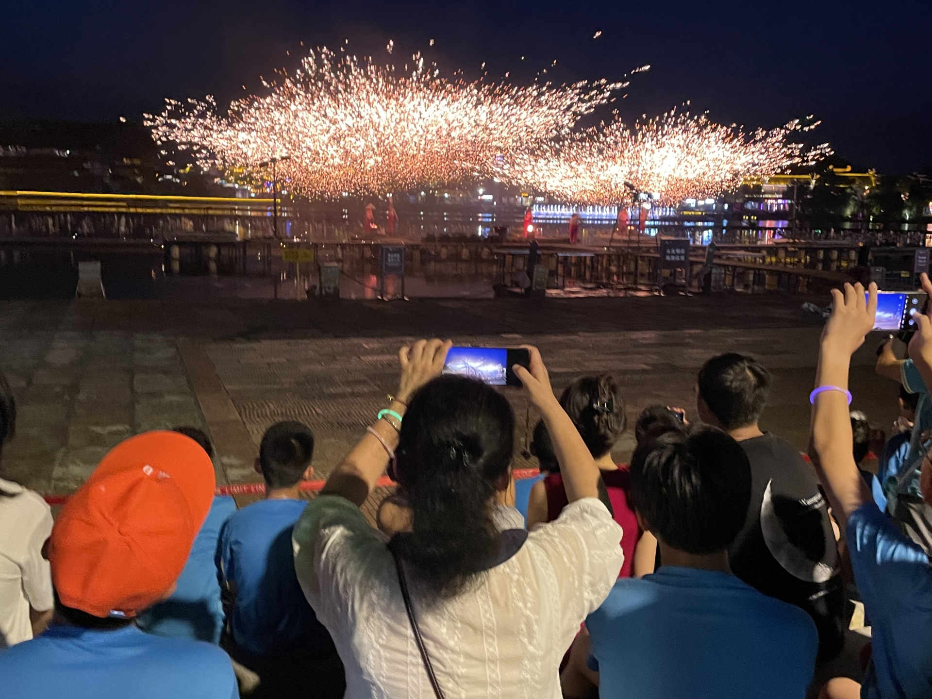 在整个研学之旅中,在我脑海挥之不去的场景是观看非遗打铁花和参观三一重工厂房。“打铁花”这一源自古老技艺的非遗项目,不仅承载着匠人的汗水与智慧,更是中华民族勤劳、坚韧、勇于创新精神的生动体现。铁花在匠人师傅的锤炼下如流星般划破夜空,化成漫天繁星,实在太美太震撼了!