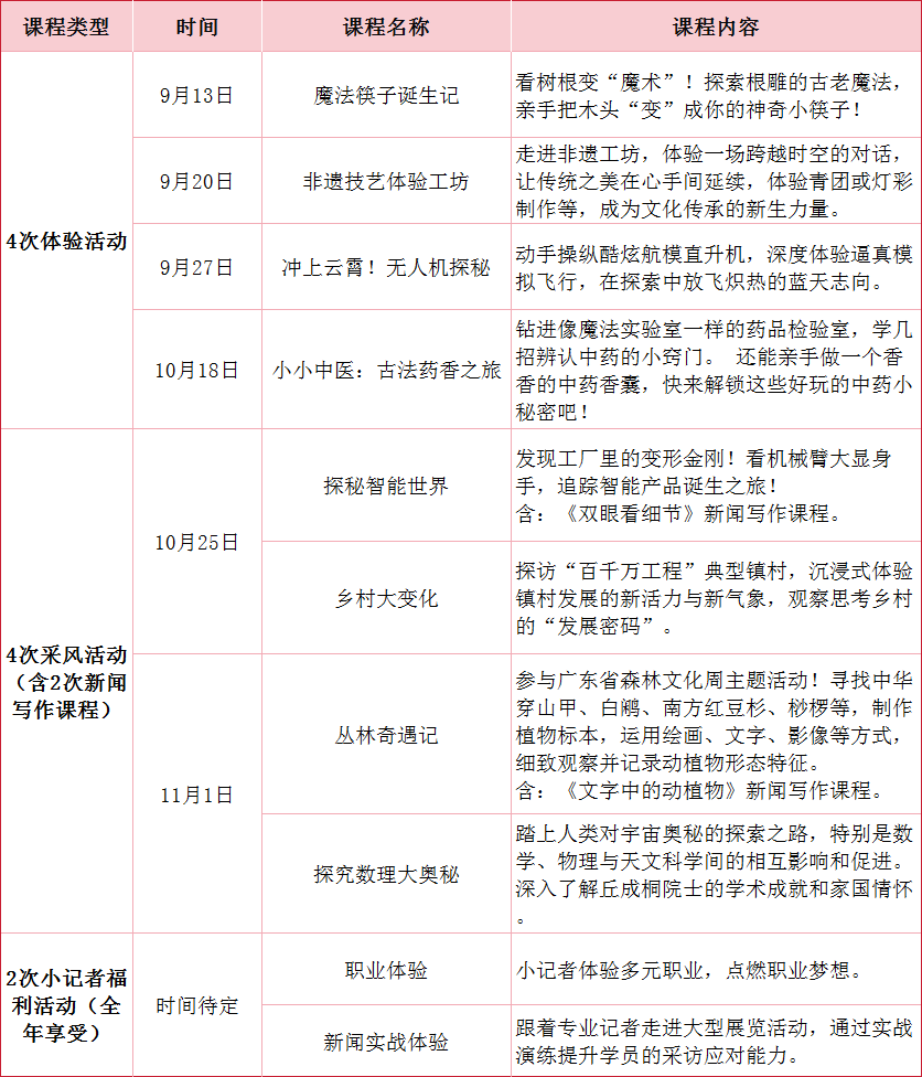 6、赠送梅州日报小记者俱乐部会员专属书包、帽子、上衣、精美文具、研学手册一套。
