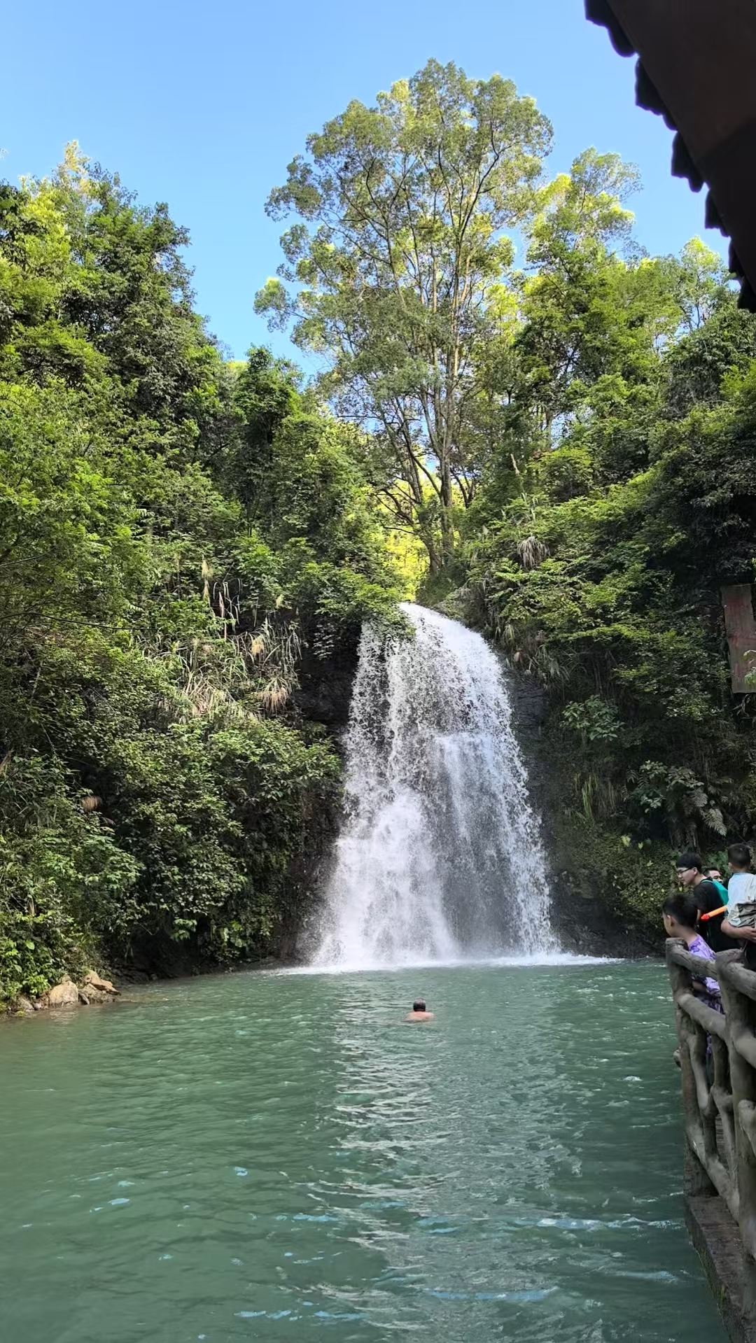 沿着长廊一直往山脚下走,路过香火鼎盛的公王庙,沿着鹅卵石铺成的石阶攀爬到半山腰,就能看到枫林瀑布。瀑布不算雄伟壮阔,却有着江南山水的灵秀。水流从几丈高的石崖上流下来,被错落的岩石分成几绺,就像一条条白色的绸带在空中舞动。水流触碰岩石,发出哗啦哗啦震耳欲聋的声音。一阵风夹带着晶莹剔透的水珠吹来,为我带来了山间沁人心脾的清凉。偶有几只鸟雀从林中掠过,留下几声清脆的鸣叫,更显这方天地的幽静。