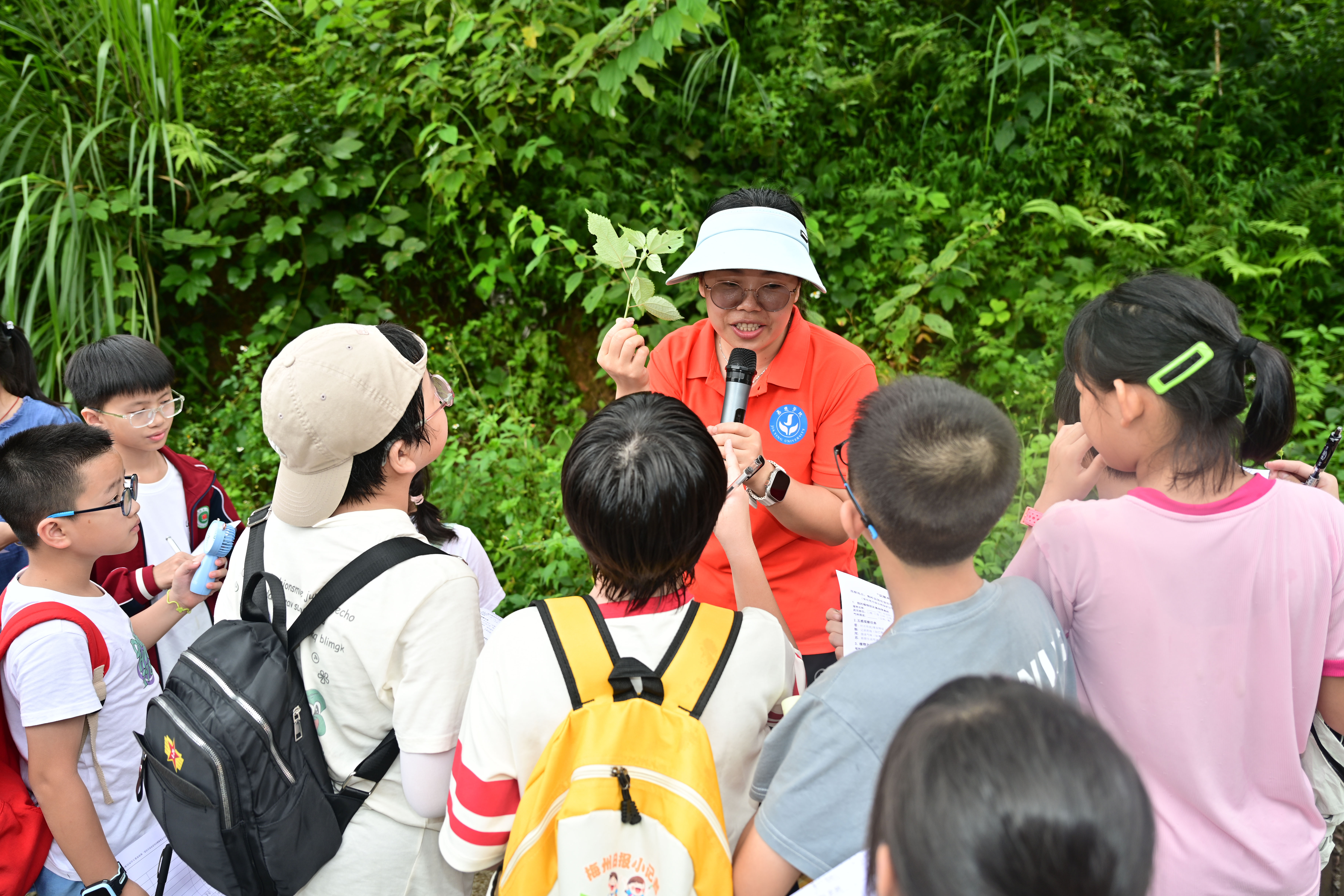 今天活动的主题是“大自然就在身边”。当我们沿着1.4公里长的自然教育径前行时,路旁的植物就像等待检阅的士兵方阵。科普老师讲解道:“这些植物可都是会治病的‘植物医生’呢!”