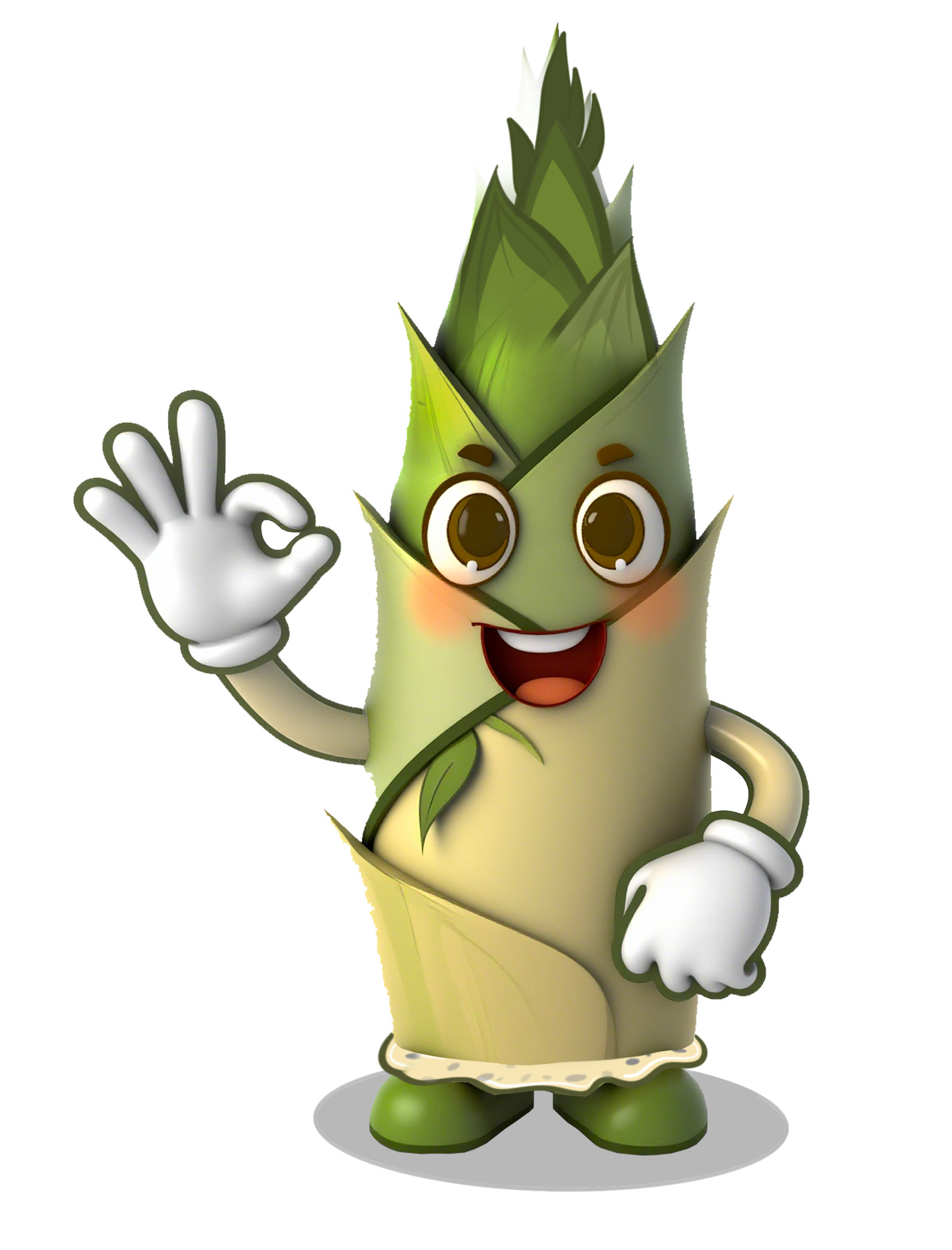 外表:以林场植物毛竹笋为原型,身体圆润可爱,包裹着层层笋壳,手脚短小但有力。