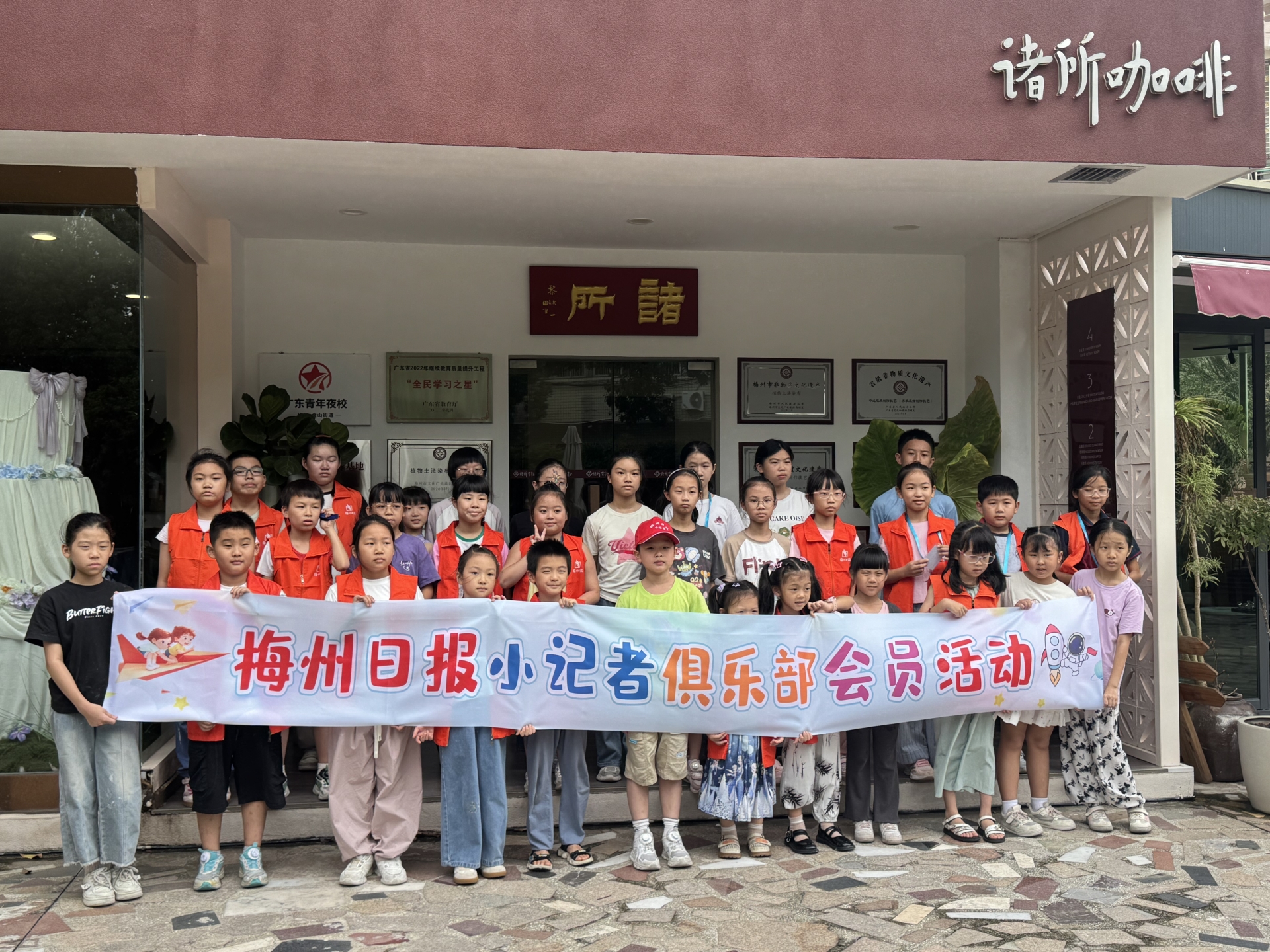 梅州日报小记者俱乐部会员活动合影留念。