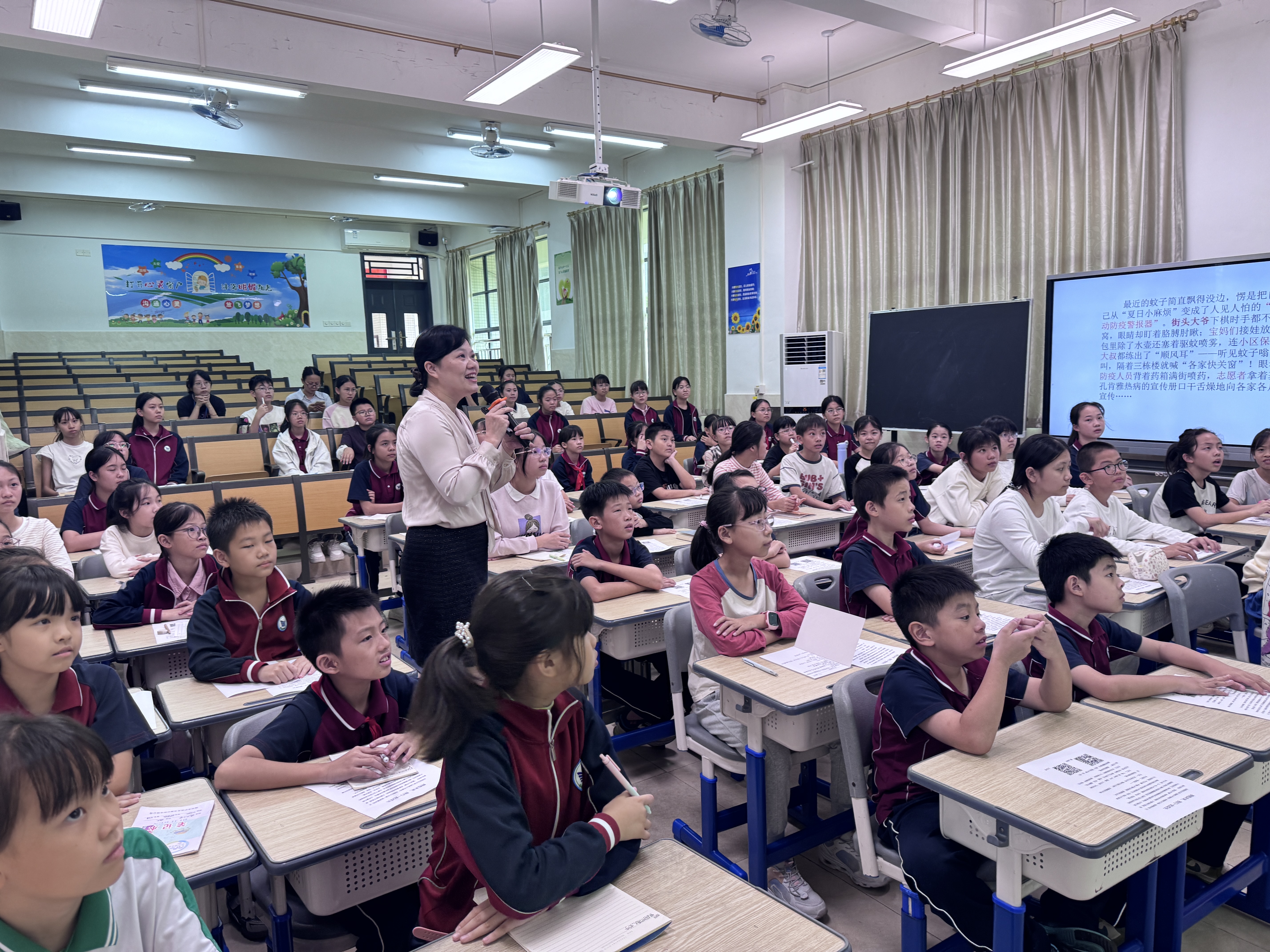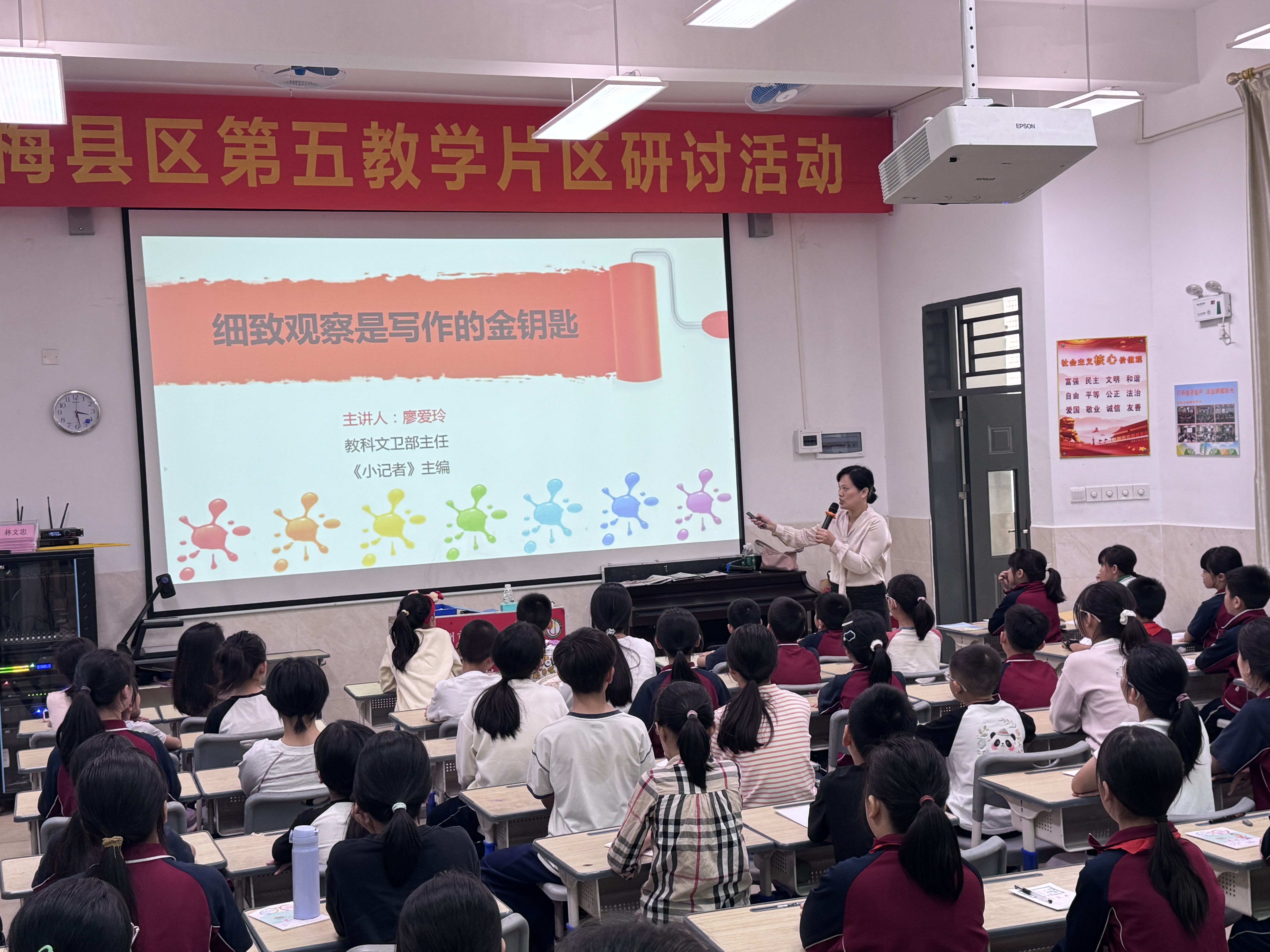掌上梅州讯 10月29日,2025年梅州日报小记者公益项目之记者进校园公益活动走进梅县区德兴小学,梅州日报社教科文卫部主任、《小记者》报主编廖爱玲为该校小记者作了一节《细致观察是写作的金钥匙》的主题讲座,该校“客韵童声”文学社70多名学员参加了讲座。