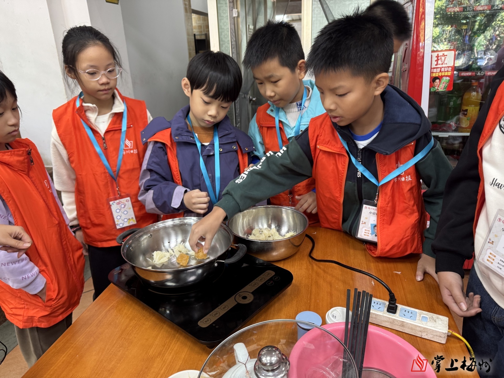 在神秘柚子工坊,小记者们化身“小小美食家”,在工作人员指导下将新鲜柚子加工成酸甜可口的柚子茶,体验从果实到美食的“魔力转换”,并将亲手制作的柚子茶和采摘的金柚带回家分享。中午,大家品尝了地道客家农家菜,补充体力后稍作休整。