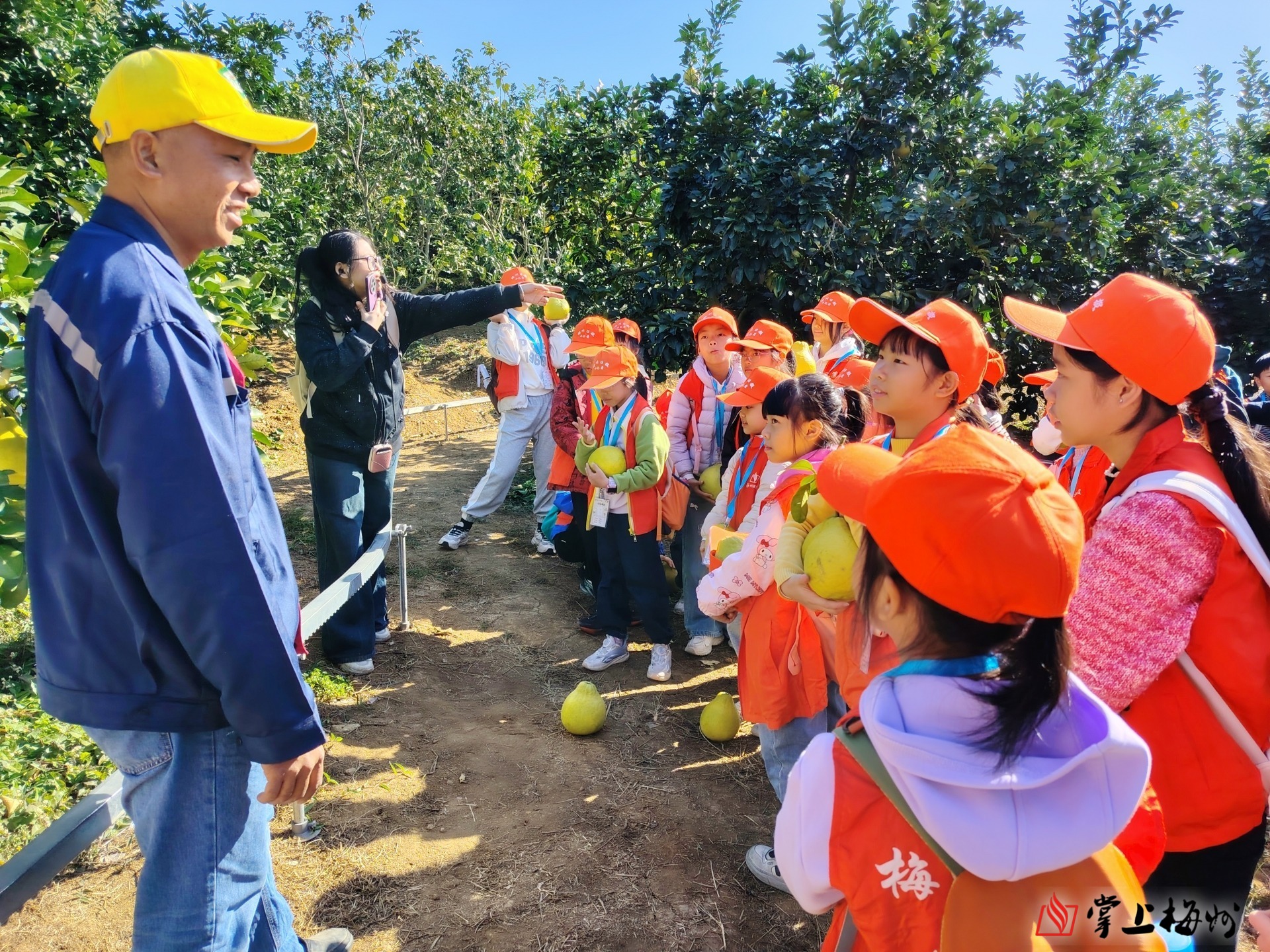 掌上梅州讯 11月29日,梅州日报小记者时令农耕系列体验班之“柚子果园大寻宝”活动圆满举行。30名小记者走进雁洋镇南福金柚种植基地与叶剑英纪念园,在田园实践与红色熏陶中度过充实的一天。