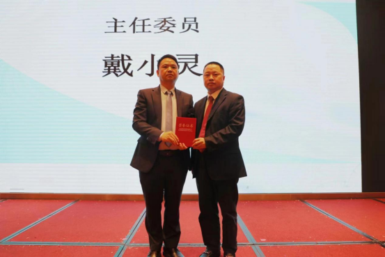 梅州市中西医结合学会王锦会长为主任委员戴小灵颁发证书