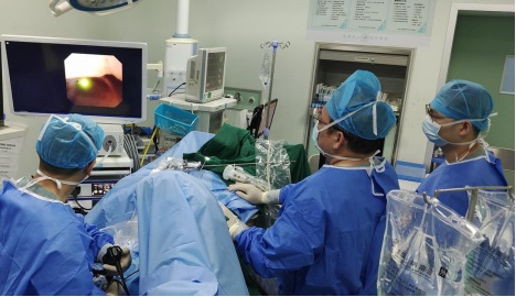 粤东医院泌尿外科杨俊副主任医师及其团队经过反复讨论,与患者及其家属充分沟通后,决定采用一种全新的双镜联合微创手术——经皮肾镜钬激光碎石联合输尿管软镜钬激光碎石术来处理左肾结石,能更精准、更有效地粉碎并清除复杂铸型肾结石。