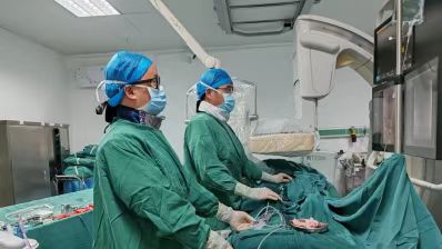 中山大学附属第三医院粤东医院心血管内科二区吴方辉主任团队在为患者进行手术。(医院供图)