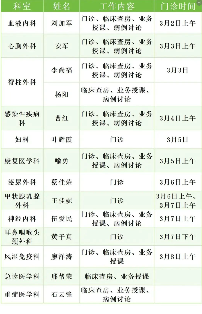 3月2日-8日中山三院派驻粤东医院专家工作安排表
