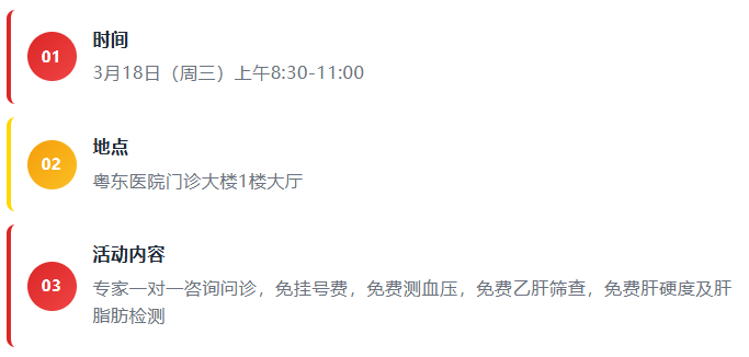 为了提高全民的爱肝、护肝意识,让更多人做到肝病的早发现、早诊断、早治疗,中山三院粤东医院肝脏内科将于2026年3月18日(周三)举办大型爱肝日义诊活动。届时,粤东医院权威肝病及相关专家团将齐聚一堂,为您送上春日里最贴心的“肝”货福利!