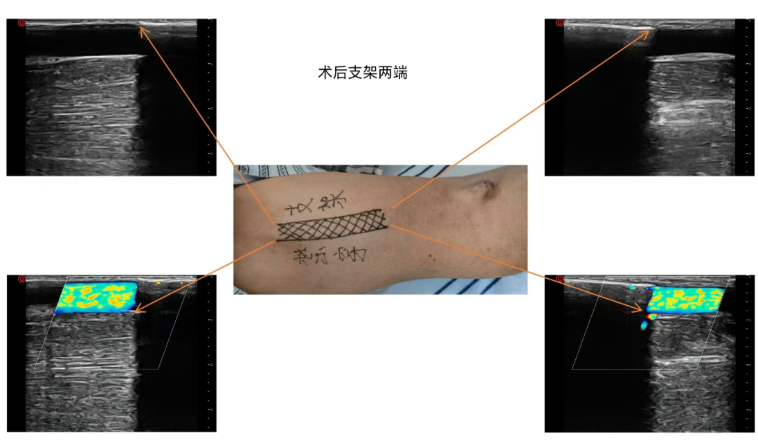 手术全程在超声实时监测下进行,中山大学附属第三医院粤东医院肾内科血管通路团队凭借精湛的介入操作能力,将覆膜支架精准输送并释放在病变血管部位。术后超声即刻评估显示,原狭窄段被完全扩张,血流通畅,效果立竿见影。整个手术仅通过一个穿刺点完成,极大减少创伤,患者术后即可活动,恢复迅速。