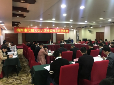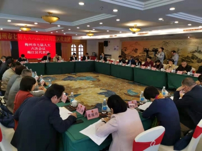 出席梅州市第七届人民代表大会第六次会议的人大代表分组审议市政府工作报告。