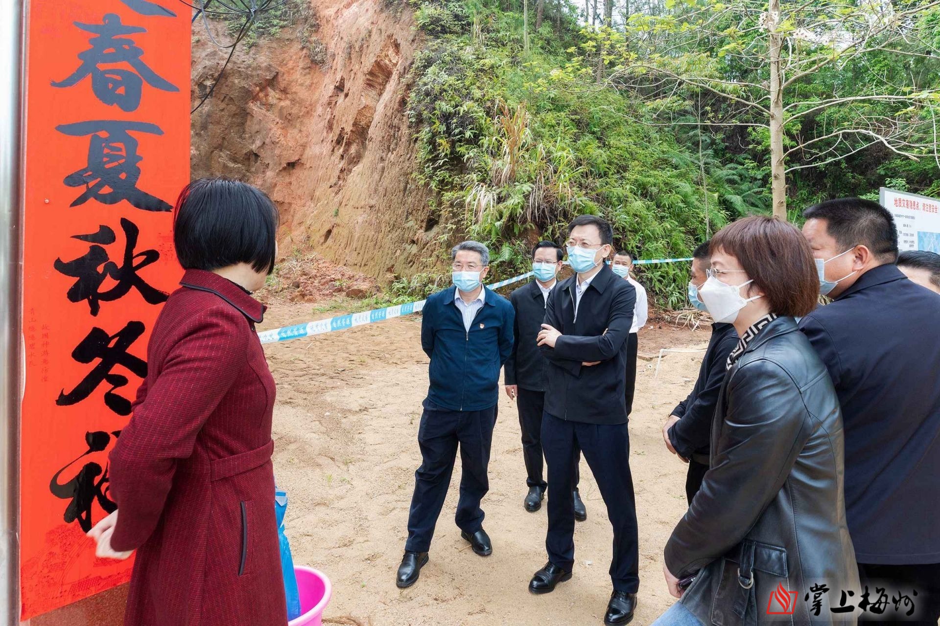 ▲马正勇在华城镇城东村下塘地质灾害隐患点督导检查,并叮嘱村民一旦遇到险情要第一时间立即避险避让。