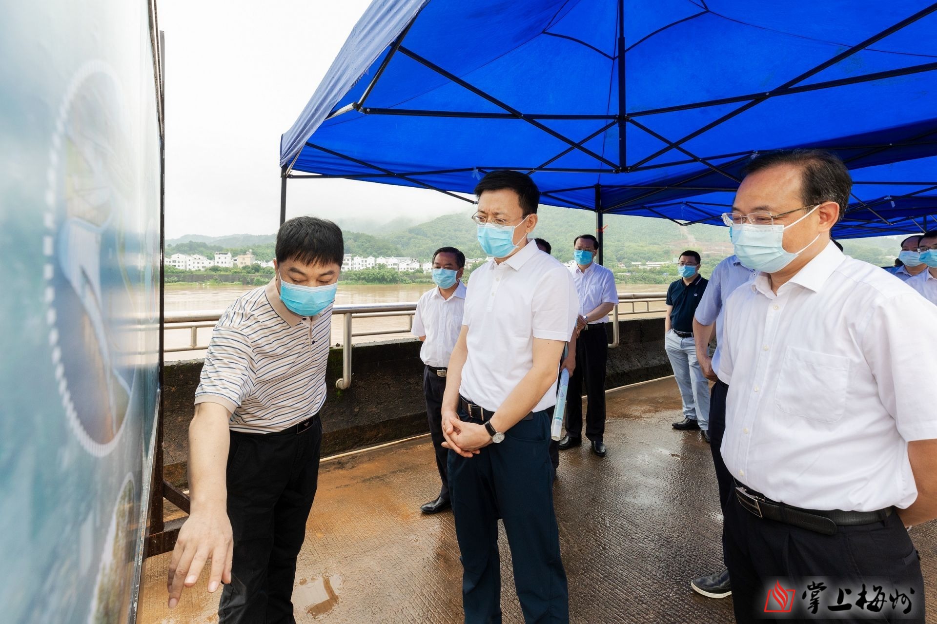 马正勇在梅江河雁洋镇鹧鸪村河段巡河并听取水资源保护利用及韩江治理工程(广东省梅州市梅县区段)项目推进情况介绍。