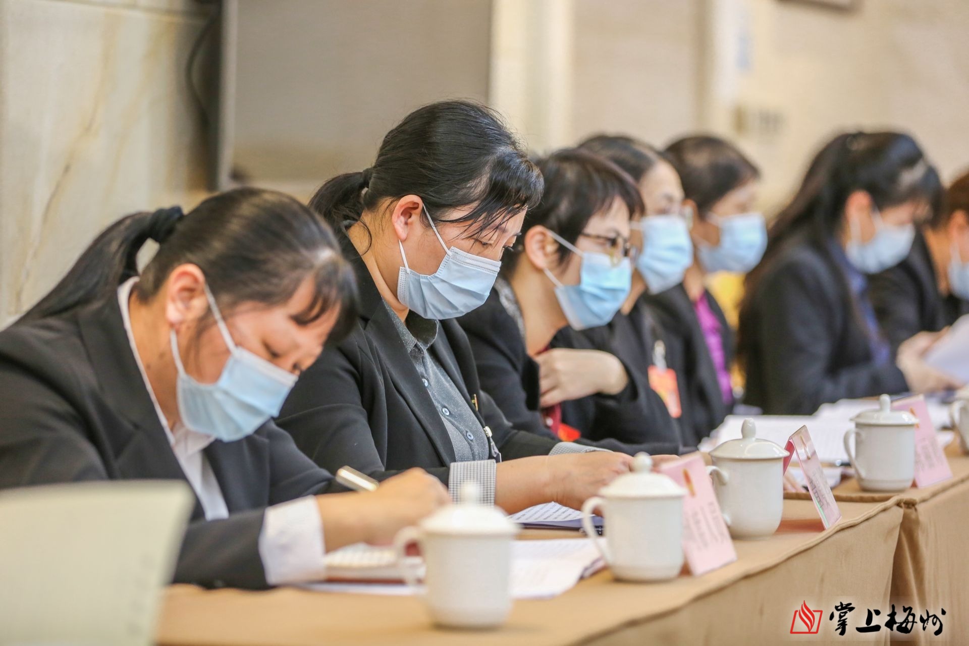 梅江区代表团分组讨论现场,与会代表认真参会。