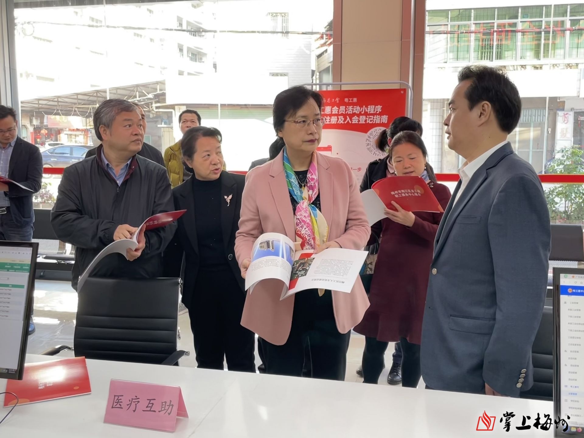 调研组在梅江区总工会调研。
