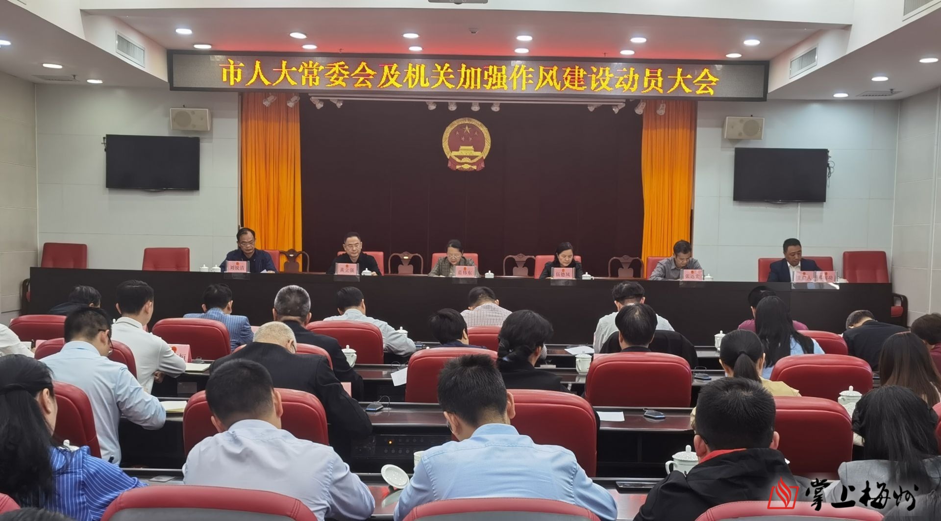掌上梅州讯 3月9日下午,市人大常委会及机关加强作风建设动员大会召开,就进一步加强作风建设,做到与市委同频共振、同向发力,进行动员部署。市人大常委会党组副书记、副主任蓝伟东,市人大常委会副主任伍德凤、黄立强、张达宏、刘锐清和机关全体干部职工参加会议,市人大常委会秘书长邓国功主持会议。