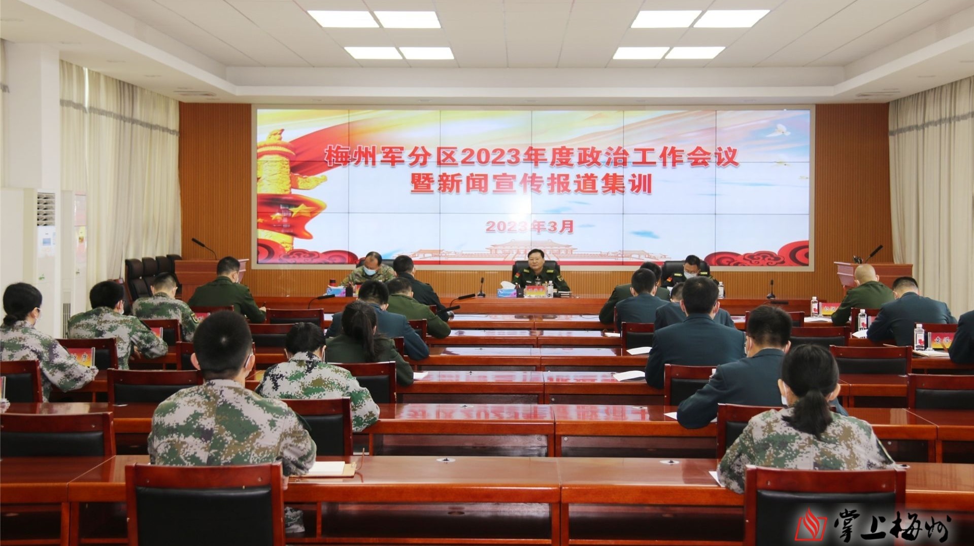 掌上梅州讯 23日,梅州军分区举办2023年度政治工作会议暨新闻宣传报道集训,20余名政治工作和新闻宣传骨干参训。市委常委、梅州军分区大校政治委员陈煜昌作动员讲话。