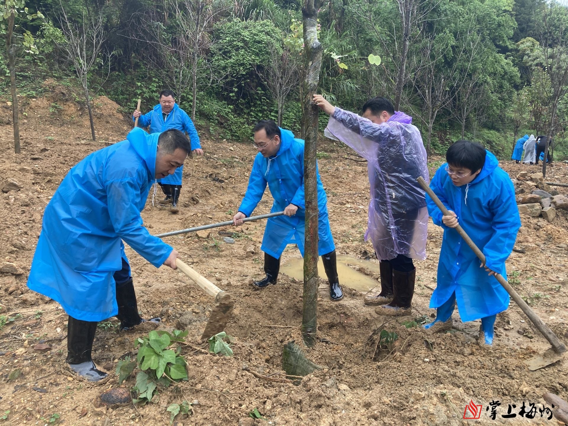 在梅南镇水美村石子岭红枫林植树现场,市人大机关党员干部与梅南镇镇村干部一起冒着绵绵细雨,挥铲搬土、扶苗培实,种下一株株宫粉紫荆树。望着挺立在细雨中的新植树苗,大家表示,通过参加植树活动,既感受到了劳动的快乐,也体会到了作为一名人大机关干部为梅州生态建设作贡献的责任和义务。接下来,要进一步深入学习贯彻习近平生态文明思想,按照党的二十大关于生态文明建设的决策部署,认真落实市委关于深入开展绿美梅州生态建设的部署要求,为植树造林、保护环境、建设绿美梅州作出更大贡献。