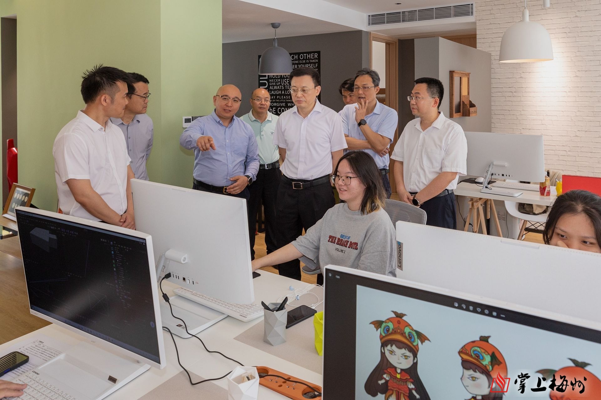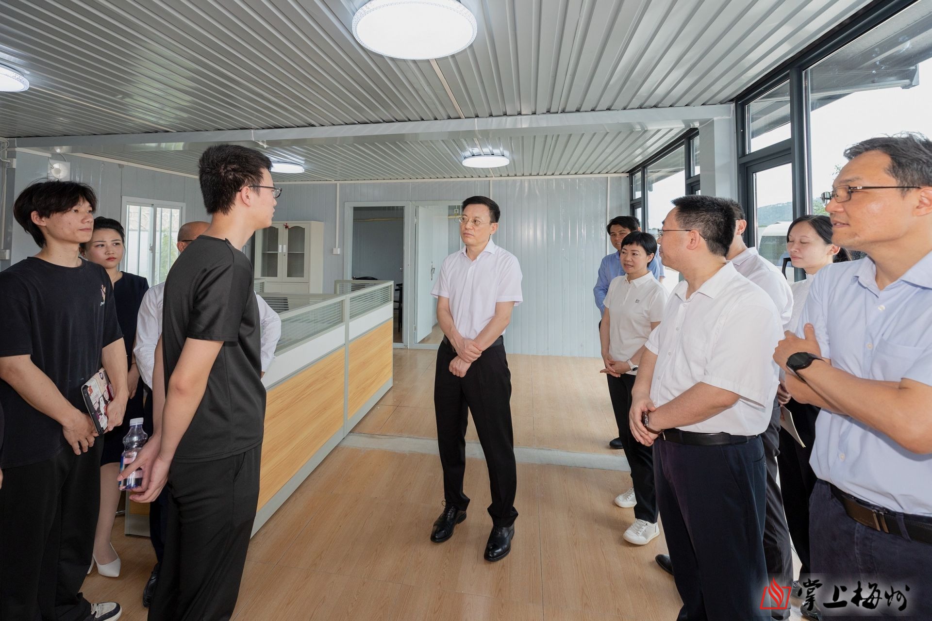 马正勇在梅江区青梅互联网创业产业园调研并与青年企业家代表交流。