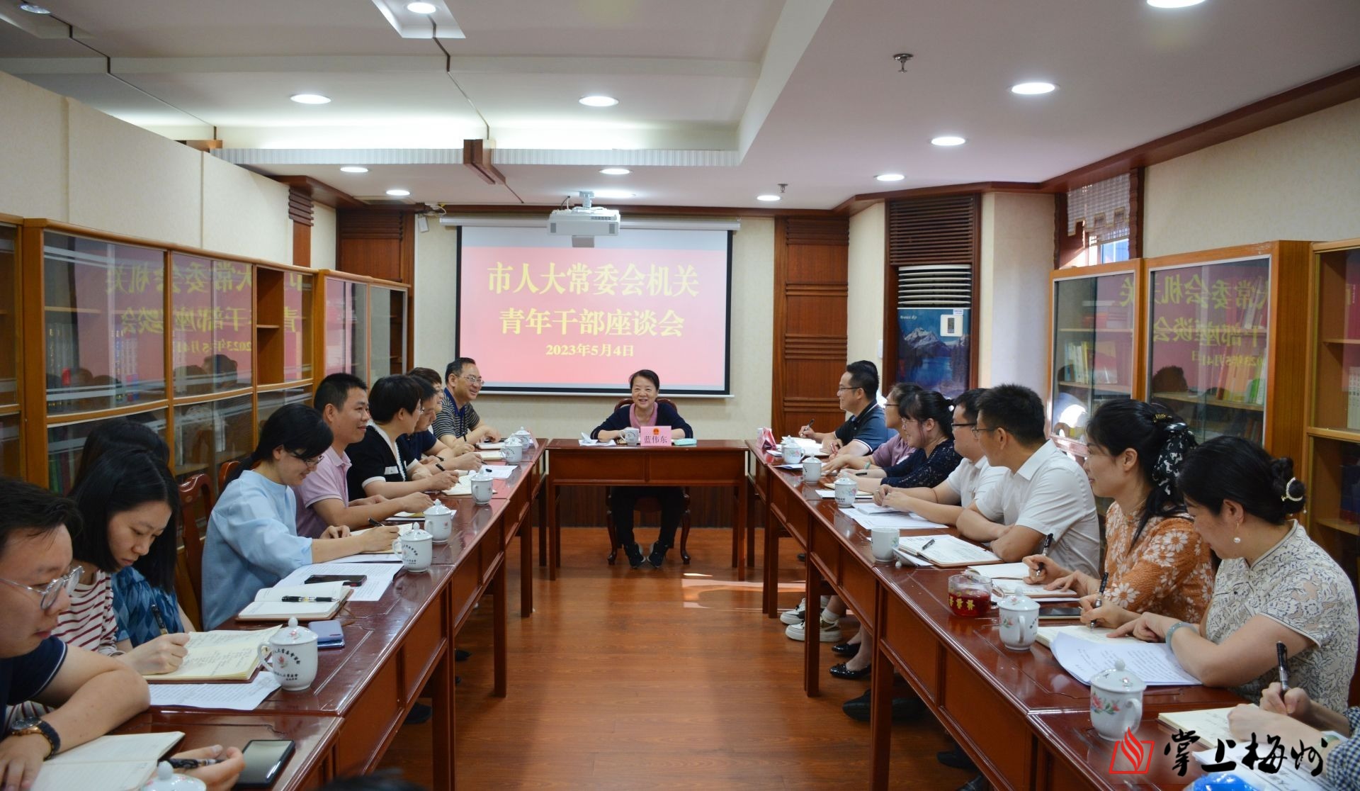 掌上梅州讯 近日,市人大常委会召开“青春心向党,建功新时代”机关青年干部座谈会。市人大常委会党组副书记、副主任蓝伟东与机关青年干部面对面座谈交流,听取大家的想法和建议,激励青年干部努力为人大工作高质量发展贡献青春力量。