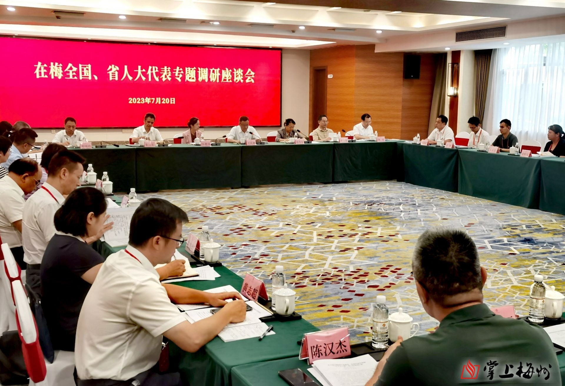 掌上梅州讯 7月19日至20日,受省人大常委会委托,市人大常委会组织在梅的十四届全国、省人大代表围绕绿美梅州生态建设、实体经济发展、“百千万工程”、营商环境建设等,结合“更好发挥人大代表作用”主题活动开展专题调研,并召开座谈会,听取市政府相关工作情况汇报。市委副书记王庆利,市人大常委会党组副书记、副主任蓝伟东,市人大常委会副主任伍德凤、黄立强、张达宏,市政府副市长、秘书长陈亮等参加调研或出席座谈会。