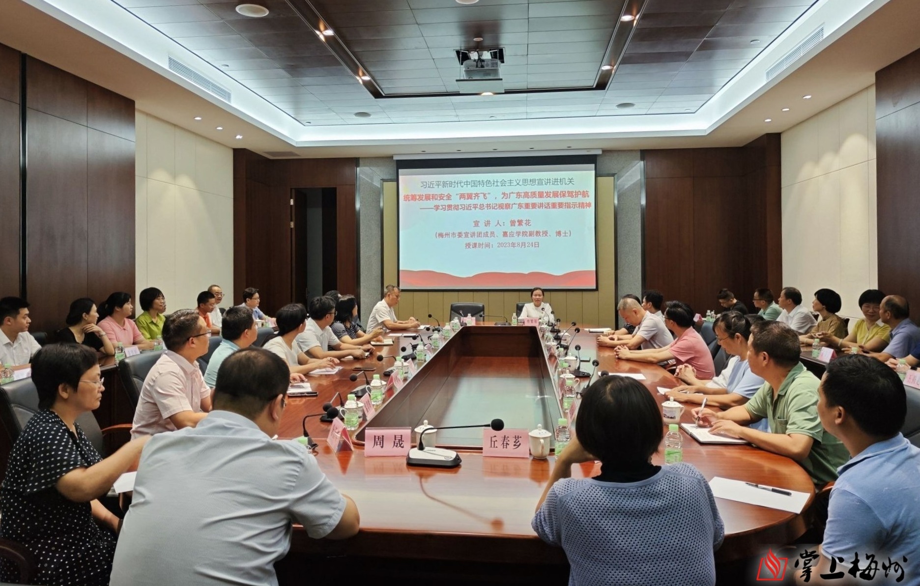 掌上梅州讯 8月24日下午,由市委台港澳办承办的市直统战、外事、科协系统“同心共学 以知促行”学习交流活动在梅城举办,邀请市委宣讲团成员、嘉应学院马克思主义学院副院长、副教授曾繁花宣讲《习近平著作选读》第一卷、第二卷暨习近平总书记视察广东重要讲话重要指示精神。市直统战、外事、科协系统各单位党员干部和市各民主党派机关负责人共50多人参加。