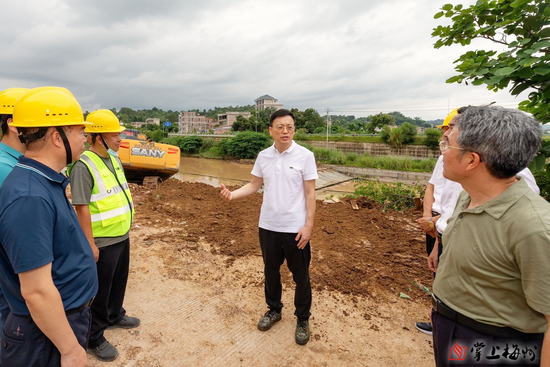 马正勇在安流镇半径村检查并听取五华县、安流镇防御台风措施落实和水毁桥梁有关情况汇报。