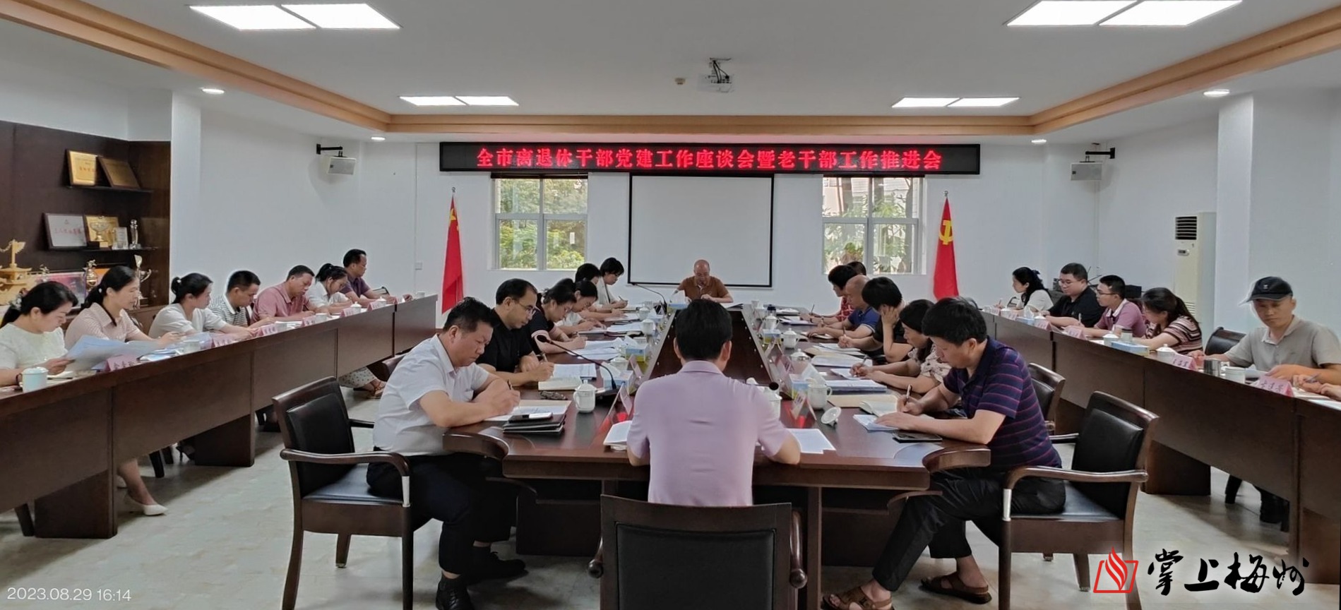 掌上梅州讯 近日,梅州市召开全市离退休干部党建工作座谈会暨老干部工作推进会,传达学习全省离退休干部党建工作座谈会暨老干部工作推进会精神,听取各县(市、区)老干部工作开展情况和新时代离退休干部党的建设工作相关文件落实情况,对下一阶段工作进行安排部署。市委老干部局班子成员,各县(市、区)委老干部局局长和业务骨干,以及市委老干部局各科室(中心)主要负责同志参加会议。