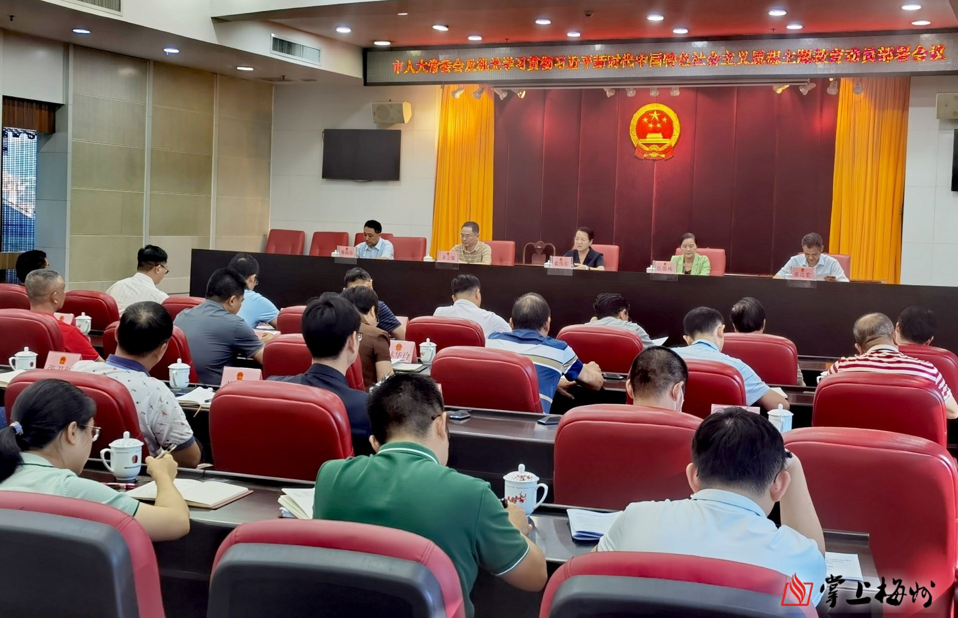 掌上梅州讯 9月21日下午,市人大常委会及机关召开学习贯彻习近平新时代中国特色社会主义思想主题教育动员部署会。市人大常委会党组副书记、副主任蓝伟东,市人大常委会副主任伍德凤、黄立强、张达宏,市人大常委会秘书长邓国功,市人大常委会机关全体干部职工参加会议。