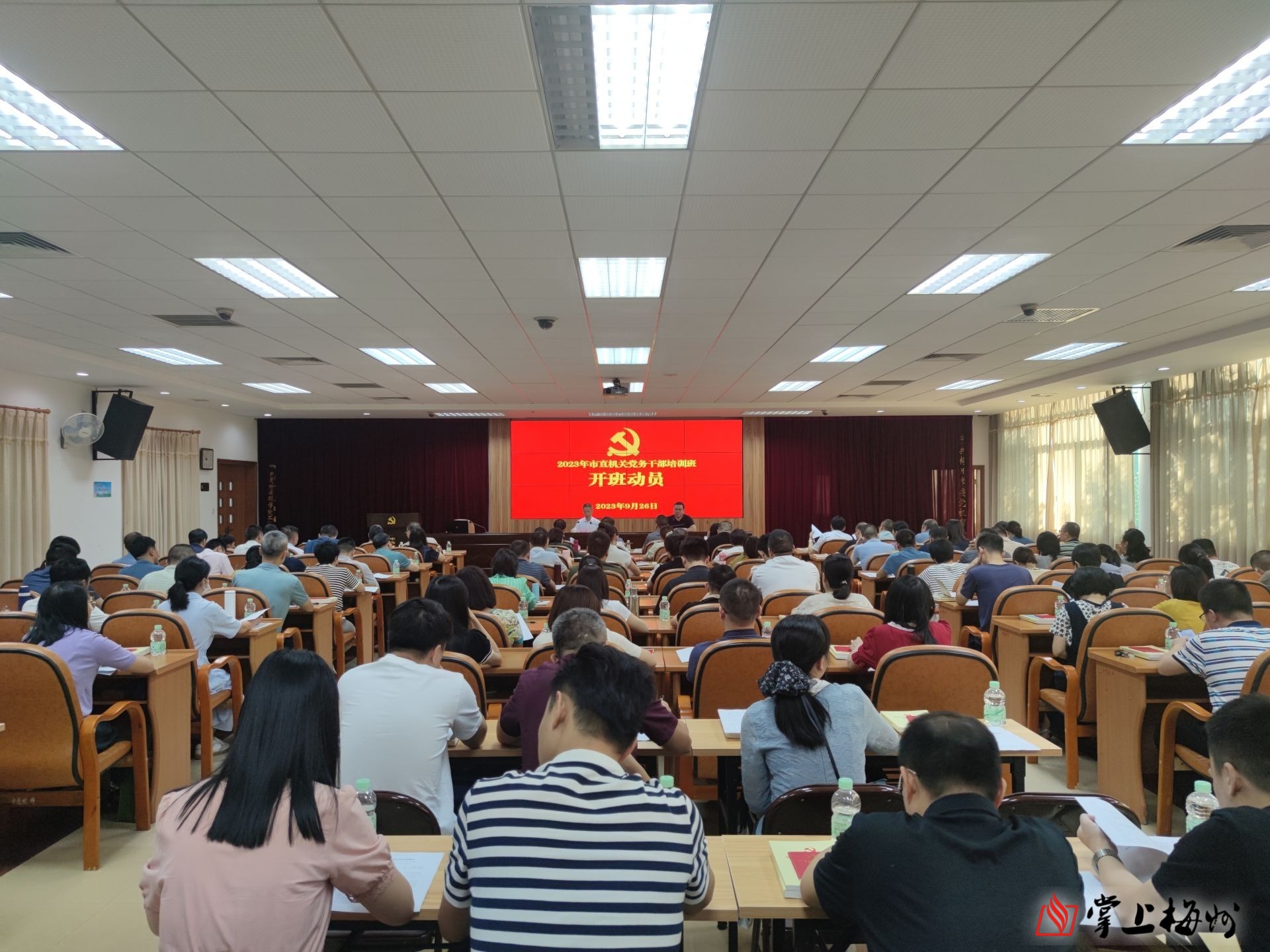 掌上梅州讯 26日上午,2023年市直机关党务干部培训班在市委党校开班。党组织关系隶属于市直机关工委的市直和中央、省属驻梅单位党务干部共125人参加培训。旨在通过培训,进一步增强基层党组织特别是党支部的政治功能和组织功能,建设“四强”党支部,不断强化党务干部队伍建设,持续以高质量的机关党建推动高质量发展。