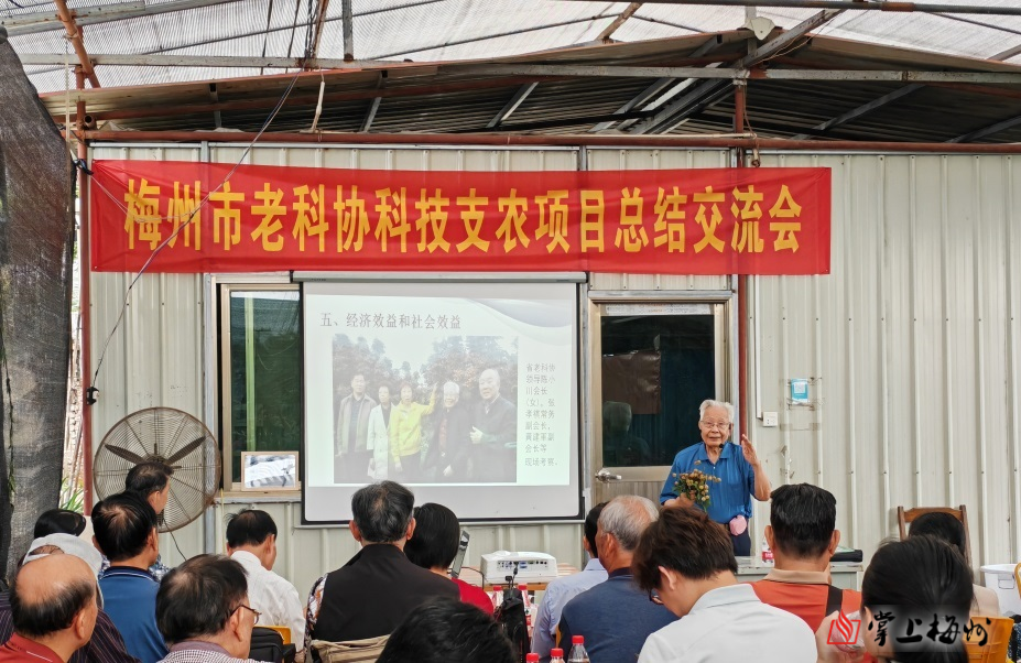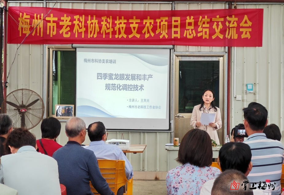 掌上梅州讯 日前,梅州市科协与市老科学技术工作者协会在梅县区多丰果场召开科技支农项目总结交流现场会。嘉应学院、梅州市科技局、梅州市委老干部局、梅州市农林科学院、雁洋叶剑英基金会、梅县区有关单位、市直学(协)会和各地四季蜜龙眼种植场等代表共60多人参加会议。会议由梅州市老科协会长梁均方同志主持。