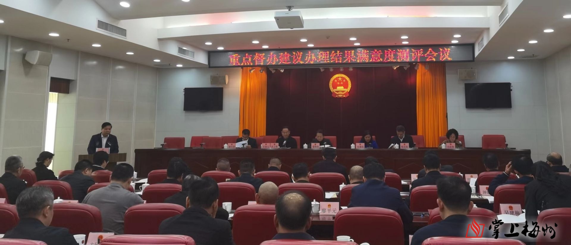 掌上梅州讯 1月8日上午,市人大常委会召开重点督办建议办理结果满意度测评会议。市人大常委会党组副书记、副主任蓝伟东,副主任伍德凤、黄立强、张达宏,副市长陈伶俐,市人大常委会党组成员曾小喜,以及市人大常委会委员、重点督办建议领衔代表等参加会议。