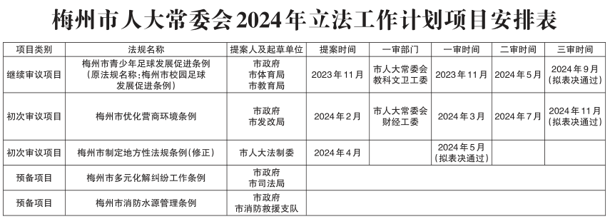 梅州市人大常委会2024年立法工作计划