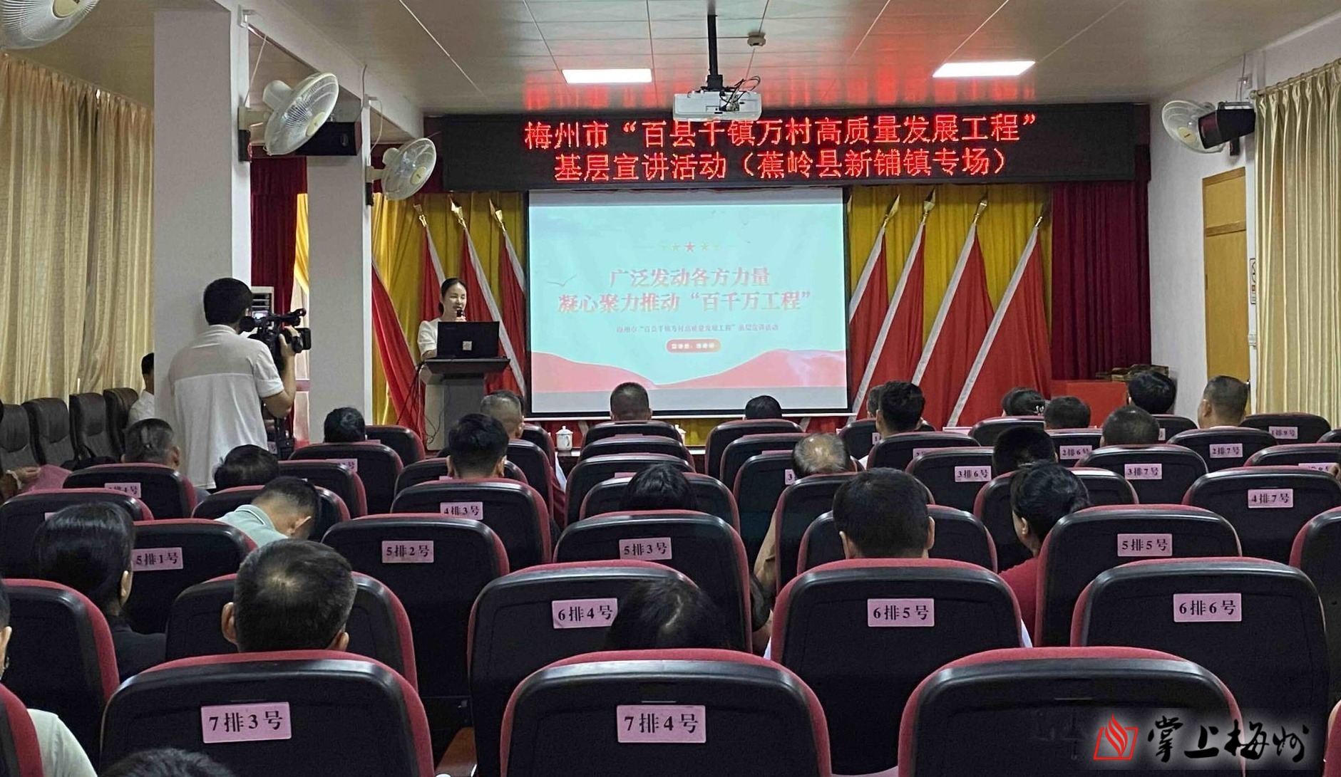 掌上梅州讯 5月15日,梅州市委宣传部举办梅州市“百县千镇万村高质量发展工程”基层宣讲活动,先后走进省“百千万工程”首批典型镇村蕉岭县新铺镇和三圳镇九岭村,引导广大干部群众更好地把智慧和力量凝聚到“百千万工程”提出的目标任务上来,努力把美好蓝图变为“施工图”“实景图”。