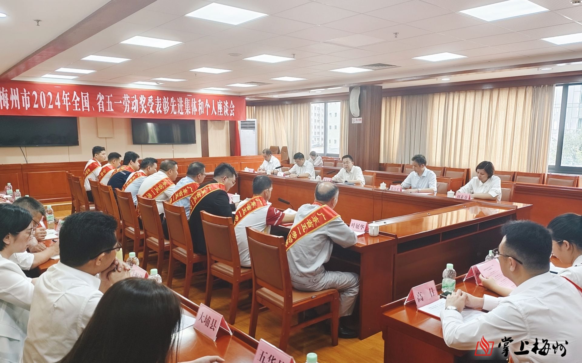 掌上梅州讯 5月27日,我市举行2024年全国、省五一劳动奖受表彰先进集体和个人座谈会。市委副书记、梅江区委书记陈金銮,市人大常委会副主任、市总工会主席张达宏为受表彰先进集体代表和个人颁奖。