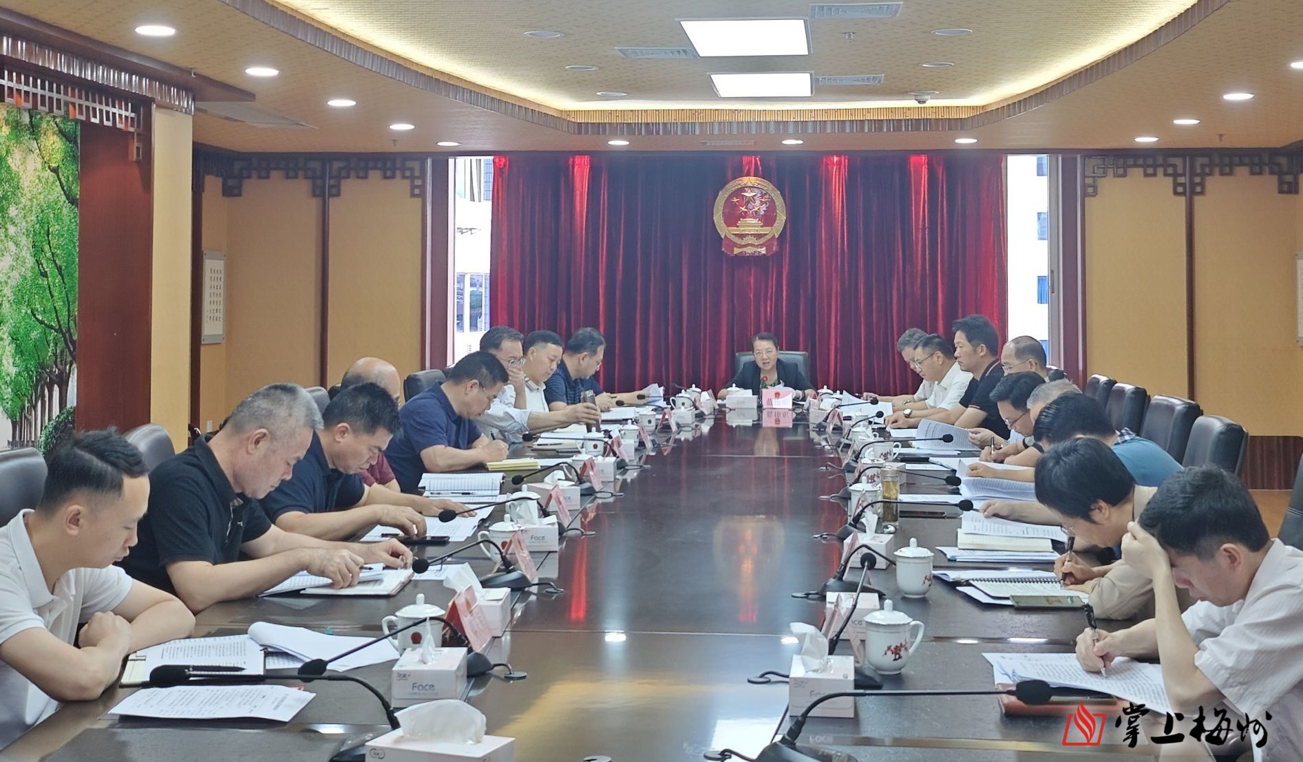 掌上梅州讯 5月30日,受市委书记,市人大常委会党组书记、主任马正勇委托,市人大常委会党组副书记、副主任蓝伟东主持召开市人大常委会党组会议。市人大常委会党组成员、副主任张达宏、谢文威,市人大常委会党组成员、秘书长曾小喜出席会议。