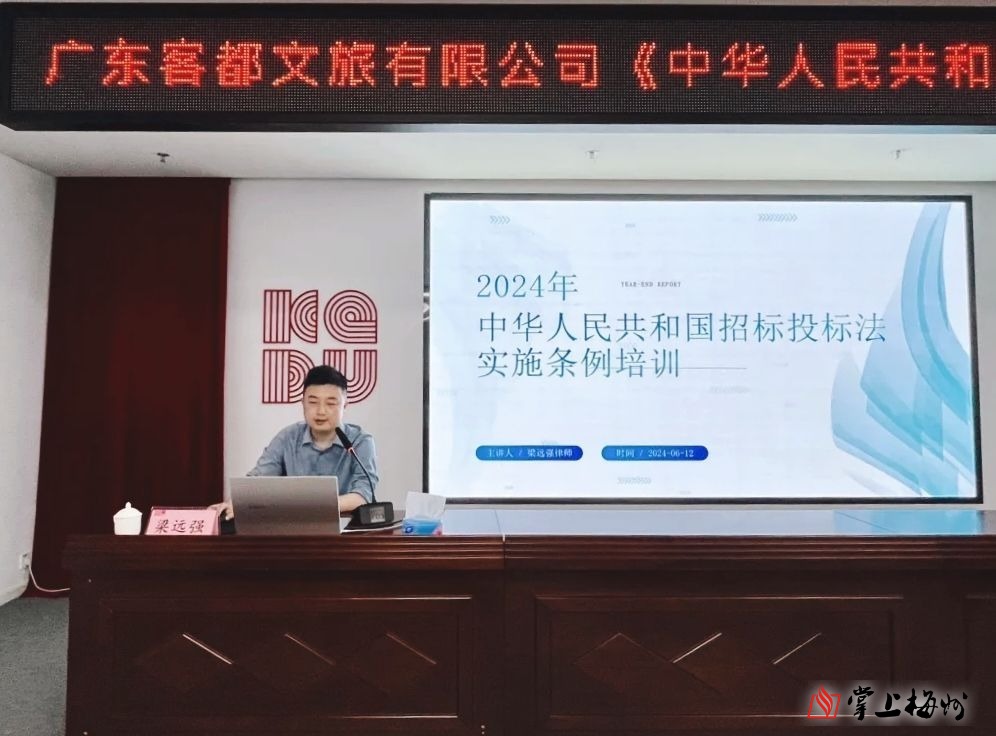 近日,客都文旅公司组织开展《中华人民共和国招标投标法》《中华人民共和国招标投标法实施条例》专题培训,邀请公司法律顾问、广东直行律师事务所主任梁远强律师授课,公司及下属子公司负责人、相关工作人员50多人参加培训会。梁远强律师围绕《中华人民共和国招标投标法》《中华人民共和国招标投标法实施条例》等法律法规,对国有企业及政府招标项目范围、招投标规范流程、相关法律责任等方面进行深度解析,重点强调在招标投标过程中需要注意的法律风险点,并结合实际案例,就如何规避法律风险、完善机制以及法律风险防范的相关事项提出了意见建议。