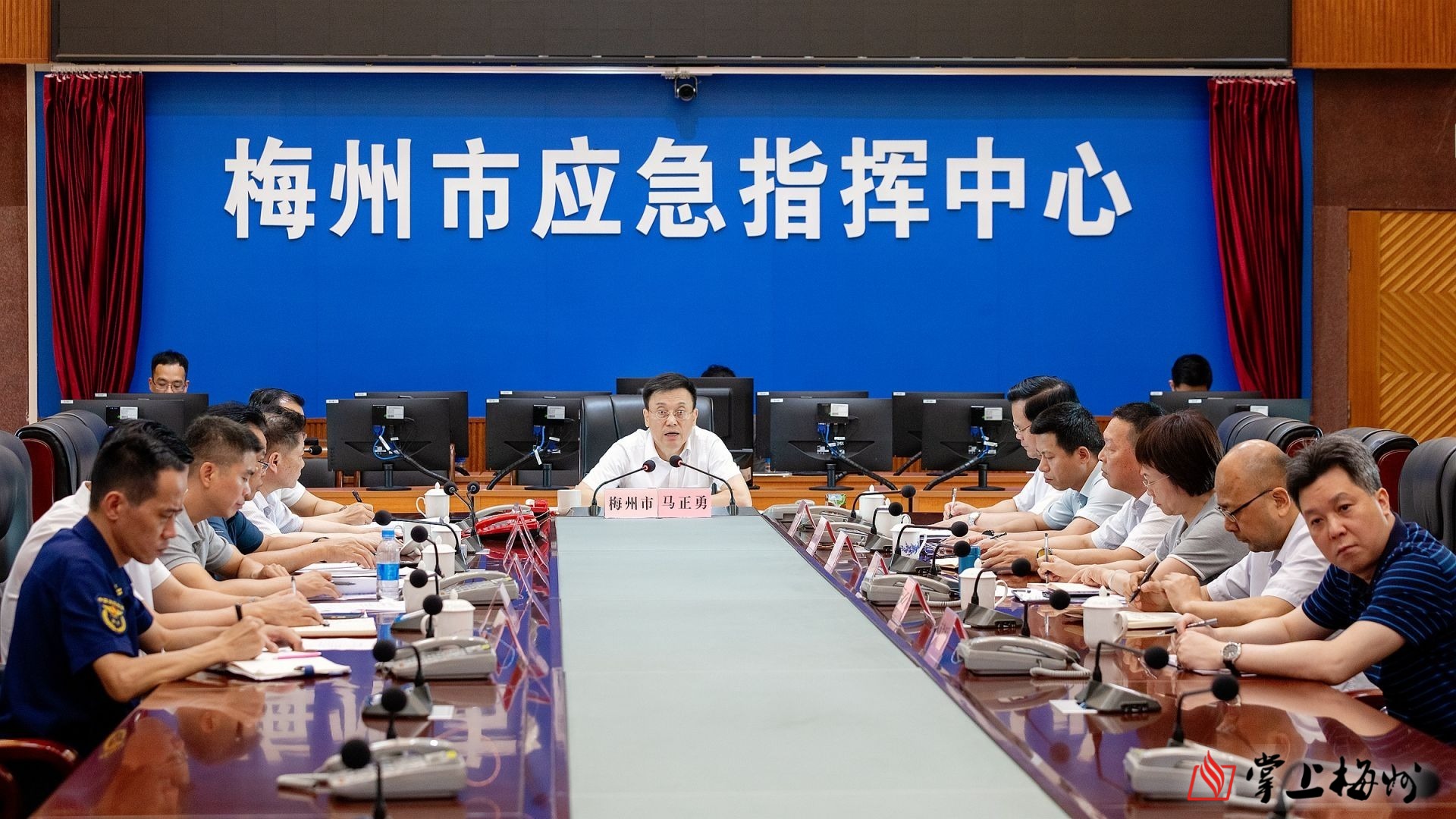 掌上梅州讯 6月17日,在全省防汛视频调度会后,我市接着召开防汛救灾工作视频调度会,深入学习贯彻习近平总书记关于防汛救灾工作的重要论述精神,传达省防汛视频调度会精神和省委书记黄坤明指示要求,对防汛救灾工作进行再部署、再落实,并向坚守在抗洪抢险第一线的工作人员致以亲切慰问和衷心感谢。市委书记马正勇主持会议并讲话,市委副书记、市长王晖出席会议。