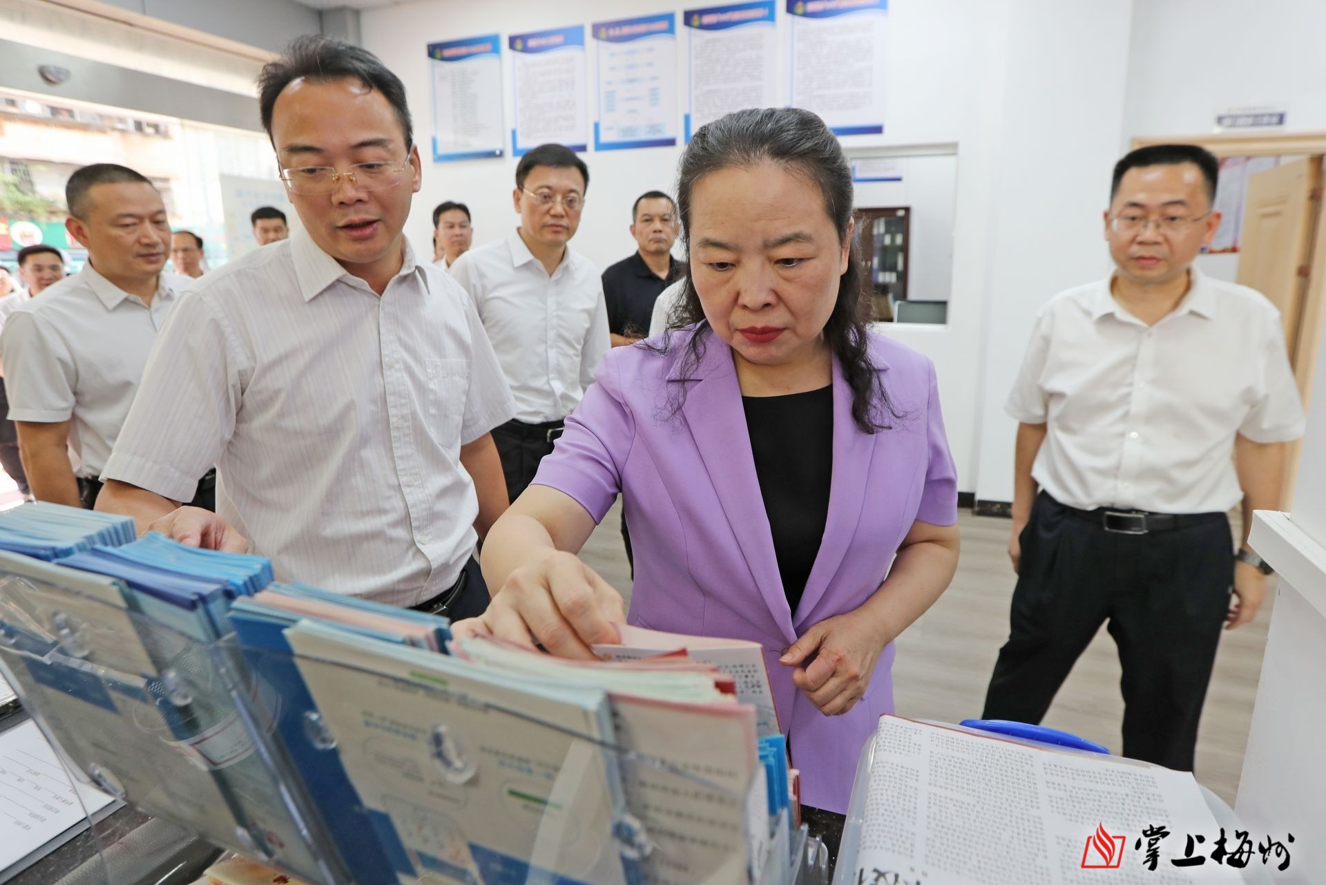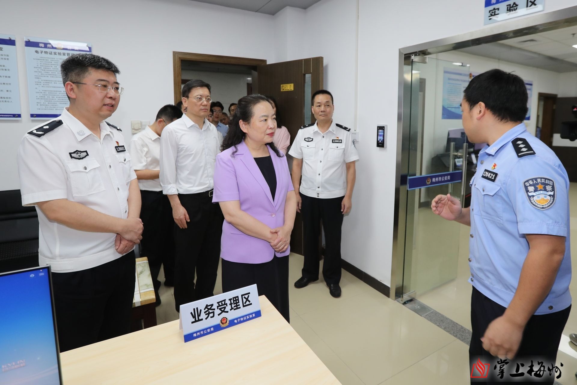 袁古洁一行到梅江区西郊街道综治中心调研。